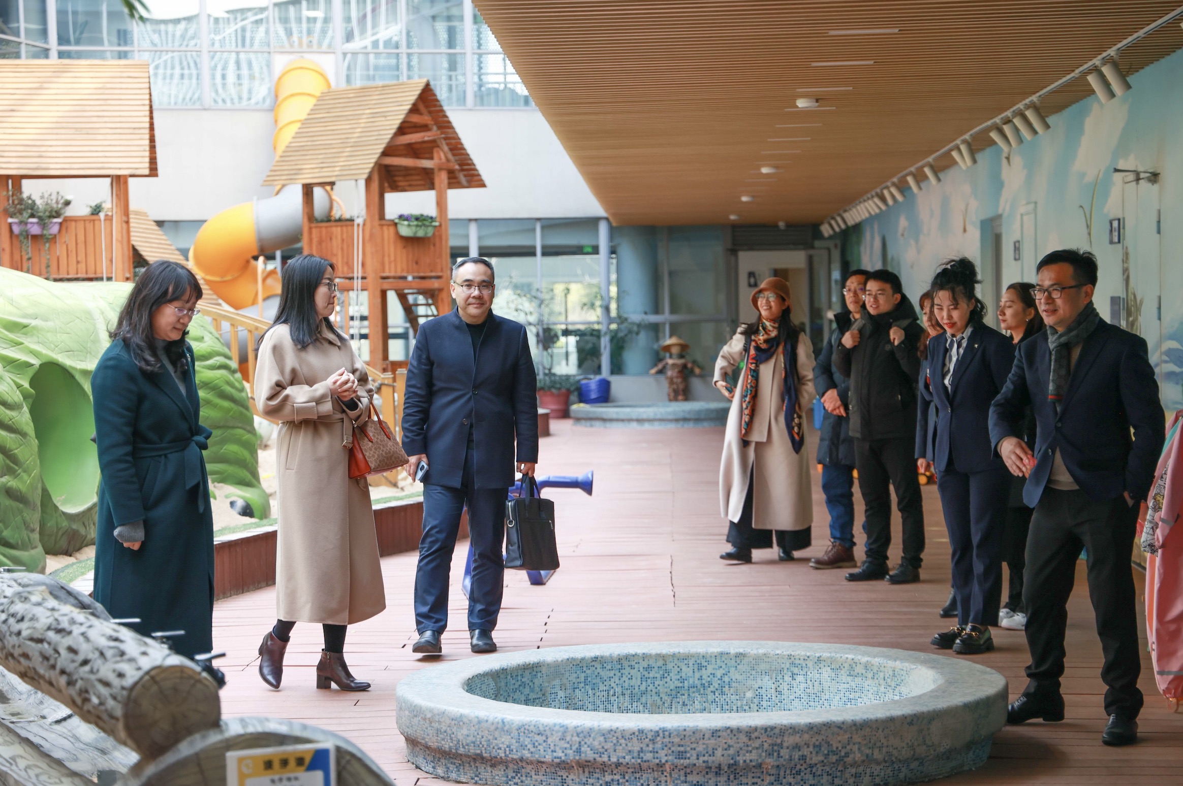 当天下午,考察组前往杭州市萧山区理想国幼儿园(托育中心)考察,在幼儿园园长周向鹏、特级教师张群陪同下,参观了该幼儿园(托育中心)的园区环境,随后该幼儿园幼托部负责人严老师对开展0至3岁托育课程及相关特色进行了详细的介绍,考察组与幼儿园就下一步在托育人才培养、活动(课程)、实践合作等方面进行了深入的交流。