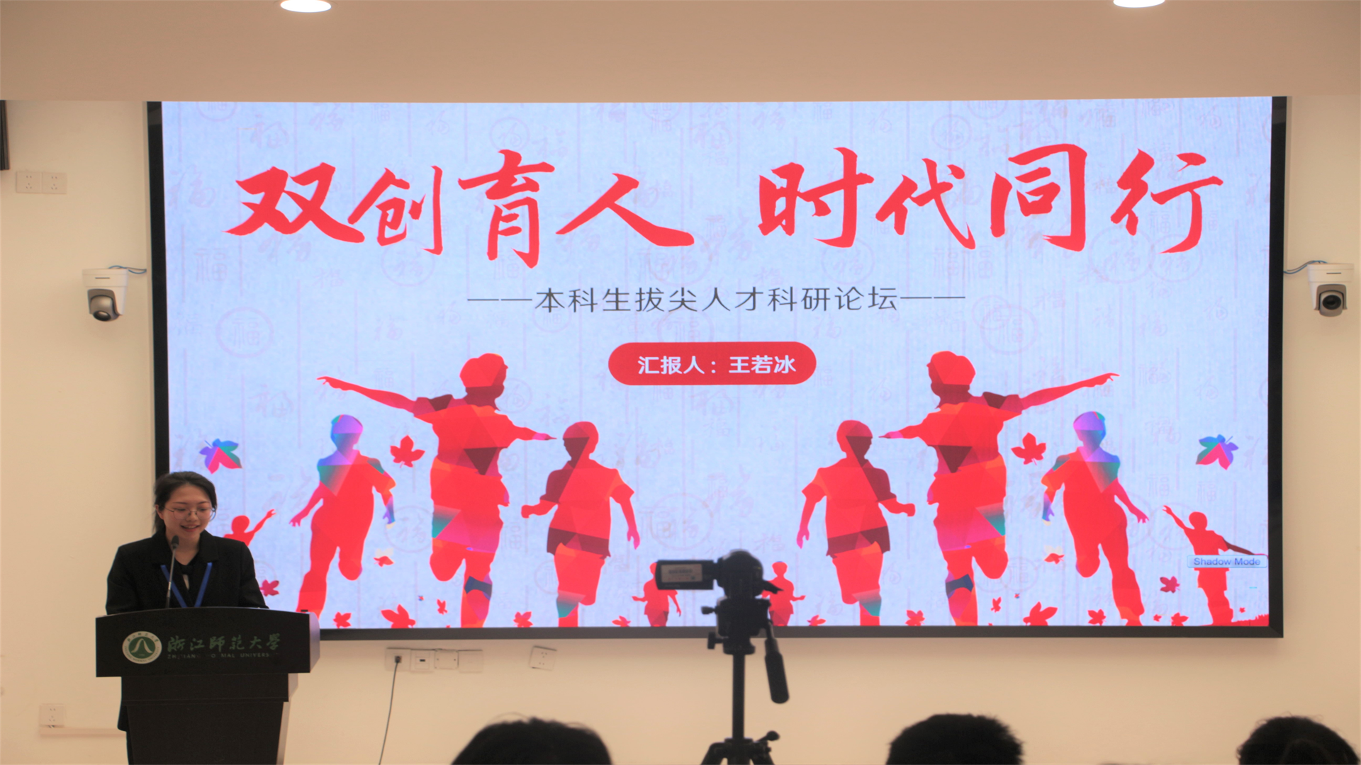 下午,在本科生拔尖人才科研论坛上,我院团委学生会团建中心主任王若冰上台进行科研成果汇报、成长经历展示及分享。