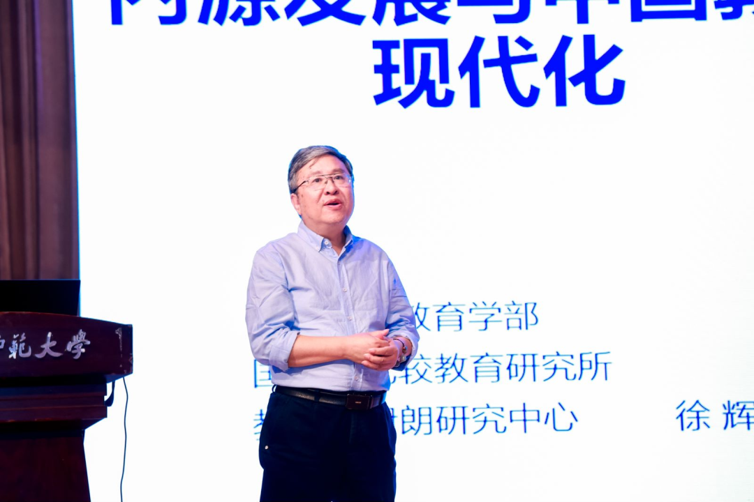 西南大学教育学部成渝双城经济圈教育研究院院长徐辉教授作了题为《“内源发展”与中国教育现代化的战略选择》的主题报告。报告聚焦内源发展的现代化观念,对认识中国式教育现代化“以人民为中心”理念具有理论上的启发价值。