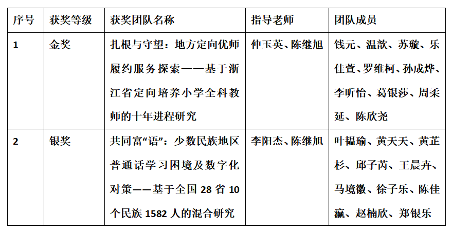 5月21日,浙江省第十八届“挑战杯”工商银行大学生课外学术科技作品竞赛在我校圆满闭幕。经过激烈角逐,我院《扎根与守望:地方定向优师履约服务探索——基于浙江省定向培养小学全科教师的十年进程研究》项目荣获金奖,这也是我院在该项赛事的首金。《共同富“语”:少数民族地区普通话学习困境及数字化对策——基于全国28省10个民族1582人的混合研究》项目荣获银奖,一金一银创造了我院“挑战杯”课外学术科技作品竞赛的历史最佳成绩。
