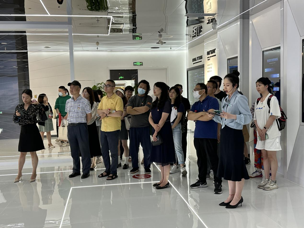 参观完西站站厅后,讲解员带领老师们首先参观了西站内的规划展示馆,该馆由城西科创大走廊、西站两千年、超级中心等六个展区组成,全面展示了杭州城市发展、西站枢纽新城规划、西站建设等内容。让大家印象最为深刻的是巨大的西站模型配合三维立体效果动画展示,生动形象且极具科技感地呈现了西站的规划思路及建设理念。我院省“双带头人”教师党支部工作室负责人傅亚强老师认为,城西科创大走廊是高质量发展的典型代表,是打造未来创新高地的大平台。心理学科要融入大潮流,激发新活力,实现科技创新与生态文明协调发展,产业迭代与群众需要紧密结合,经济繁荣与人民幸福感、获得感同步推进。