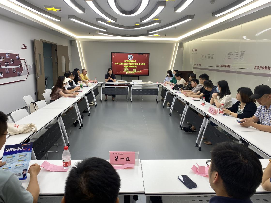随后在党群中心的会议室里,学院组织开展了学习贯彻习近平新时代中国特色社会主义思想主题教育答题竞赛活动,分成四个小组,每位组员均要抽题作答,大家踊跃作答,现场气氛热烈,学习效果明显。