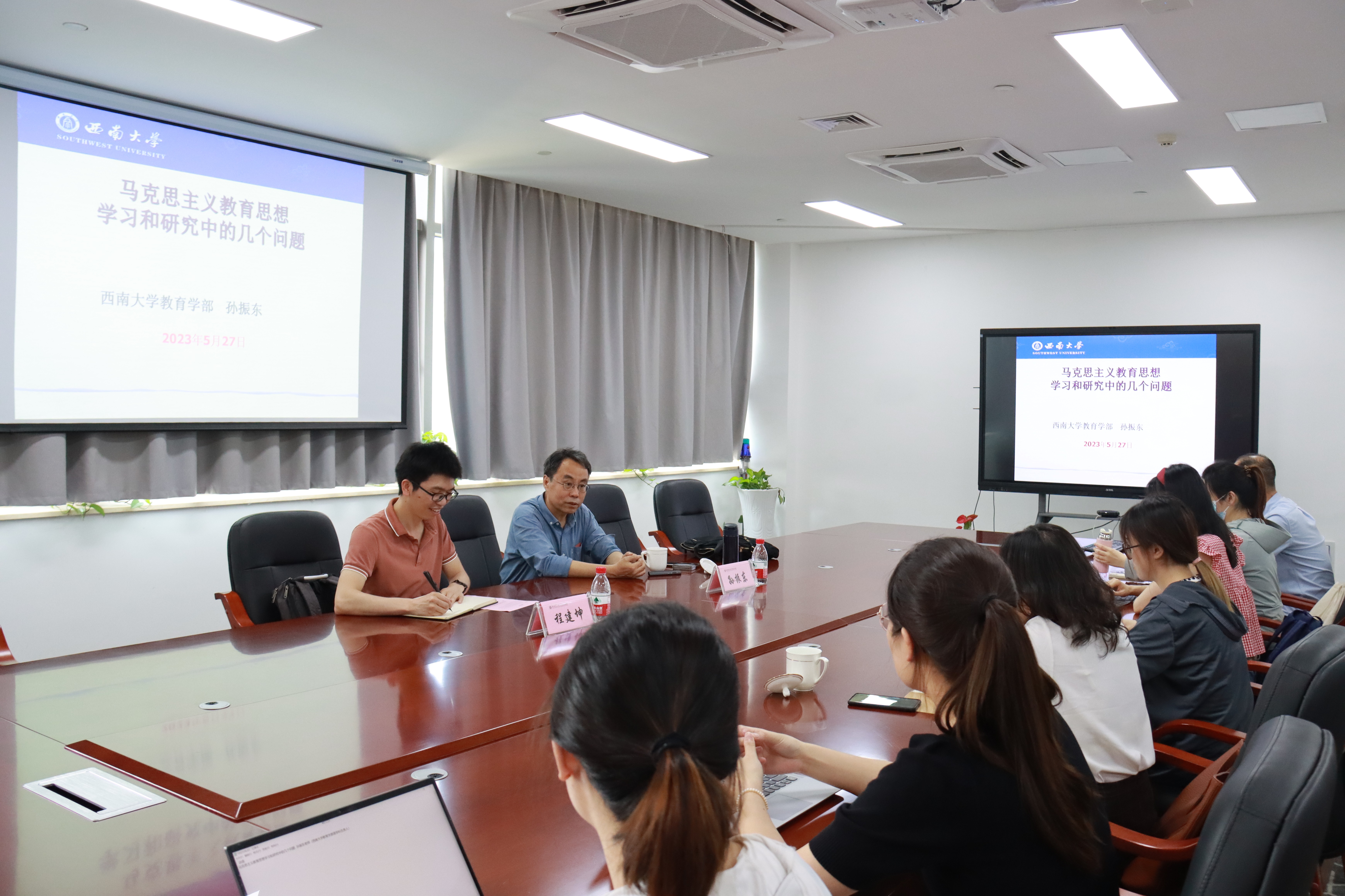 2023年6月2日下午,西南大学孙振东教授做客太炎教育讲堂,为色情av影片 师生做题为“加强马克思教育思想学习和研究的几个问题”的讲座。本次讲座由程建坤副教授主持,学院30余名师生参加了本次讲座。