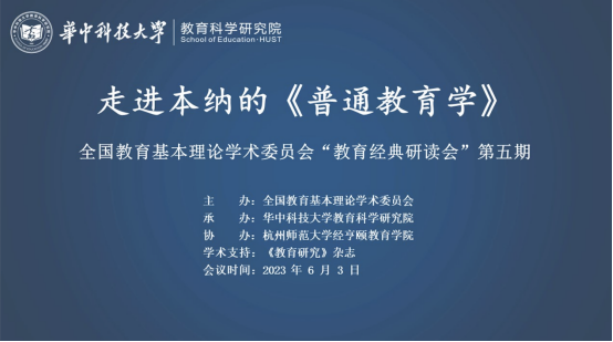 2023年6月3日晚,全国教育基本理论学术委员会第五期“教育经典研读会”成功举办。本期研读会由全国教育基本理论学术委员会主办,华中科技大学教育科学研究院承办,色情av影片 协办,《教育研究》杂志社提供学术支持。活动以线上线下相结合的方式举行,腾讯会议同步直播,围绕底特里希·本纳先生的教育学经典著作《普通教育学——教育思想和行动基本结构的系统的和问题史的引论》展开深入的学术对话。