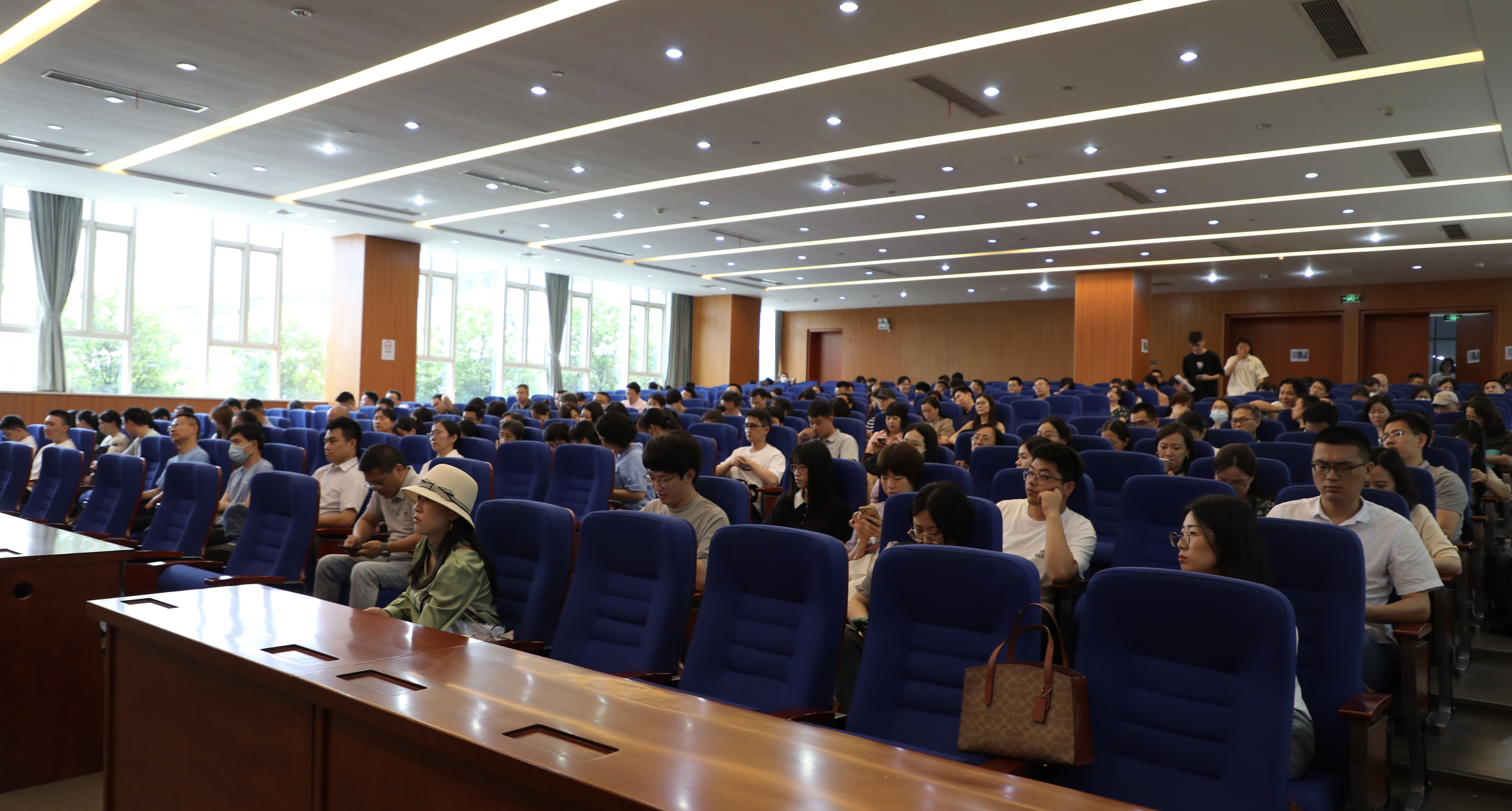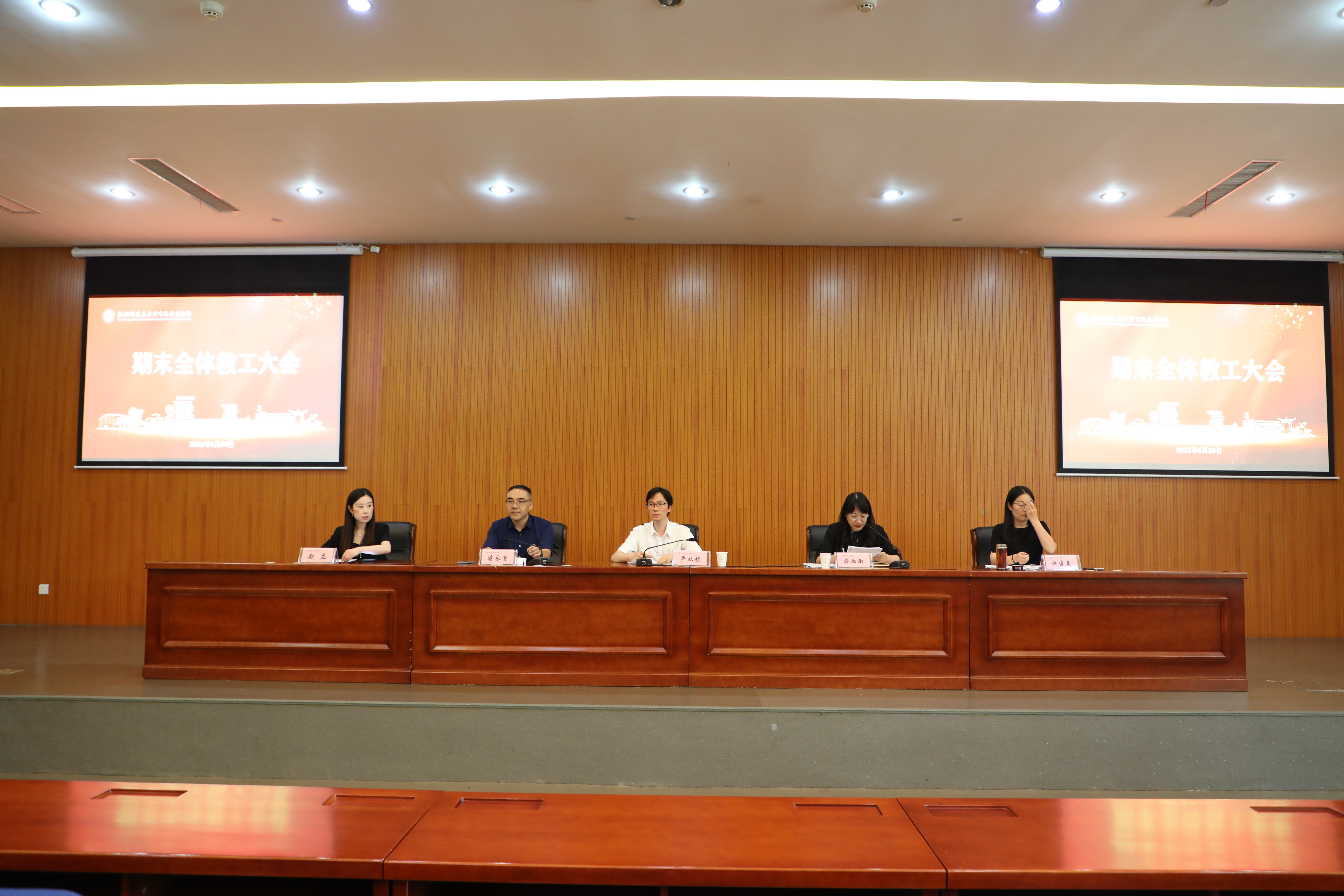 2023年6月30日下午,学院召开全体教工大会,总结回顾学期工作并部署暑期工作,开展师德师风专题教育,会议由蒋璐敏书记主持。