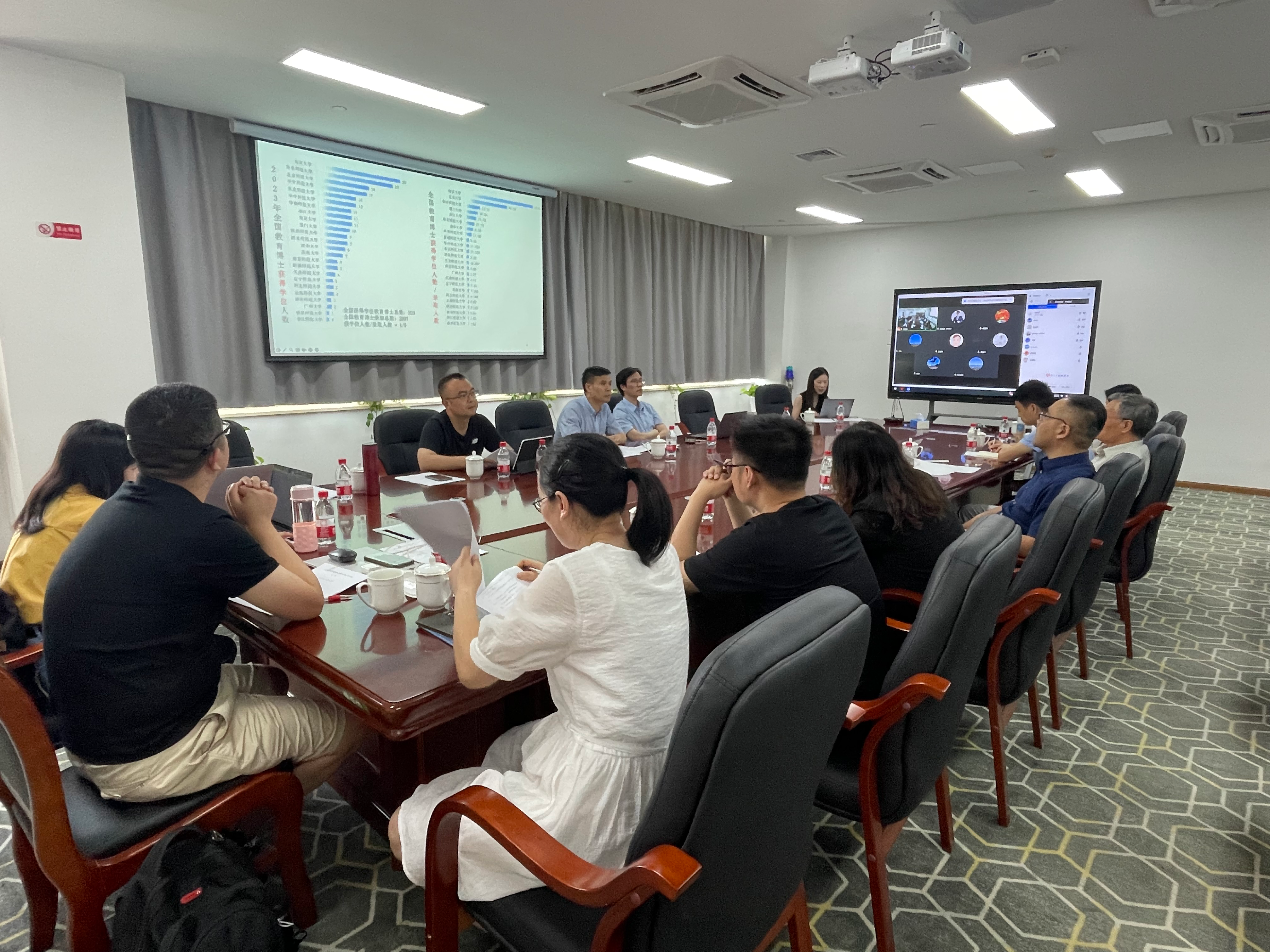 会议的第三项议程是2022、2023级教育博士研究生导师和任课老师对教育博士招生、培养等环节工作进行深入交流与讨论。学院高端人才王鉴等教师纷纷建言献策,从扩大招生影响力、科学设置报考条件与复试选拔机制、进一步提高课堂效率和培养质量等方面,提出了自己的见解。相关老师对这些问题充分的剖析和讨论,对今后我院教育博士培养和管理工作,带来了积极的启示。