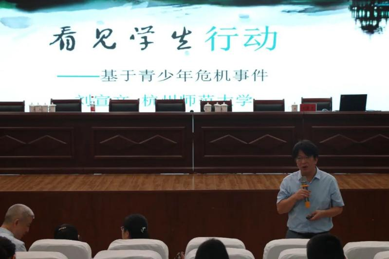 下午我院心理学系甄瑞副教授和王道阳教授开展专题讲座。甄瑞副教授的主题是“留守儿童、离异家庭子女的心理健康教育”,她分析了留守儿童和离异家庭子女所面临的困境及其常见的心理与行为问题,提出“撕下负面标签,换上优势视角”“心中特别关注,行中一视同仁”“链接家庭学校,构建支持网络”“设置情绪树洞,丰富心理活动”等四个方面进行针对性的心理健康教育。王道阳教授作为浙江省学校心理健康教育课程标准编者之一,他带领大家解读浙江省学校心理健康教育课程标准编制的时代背景、现实考虑、理念革新、理论依据、具体内容,指出中小学心理健康教育模式的核心是以心育人,培养拥有积极心理品质的时代新人,具体从社会适应、学习能力、情绪调适、人际交往、自我意识、生涯规划等六个方面来进行。