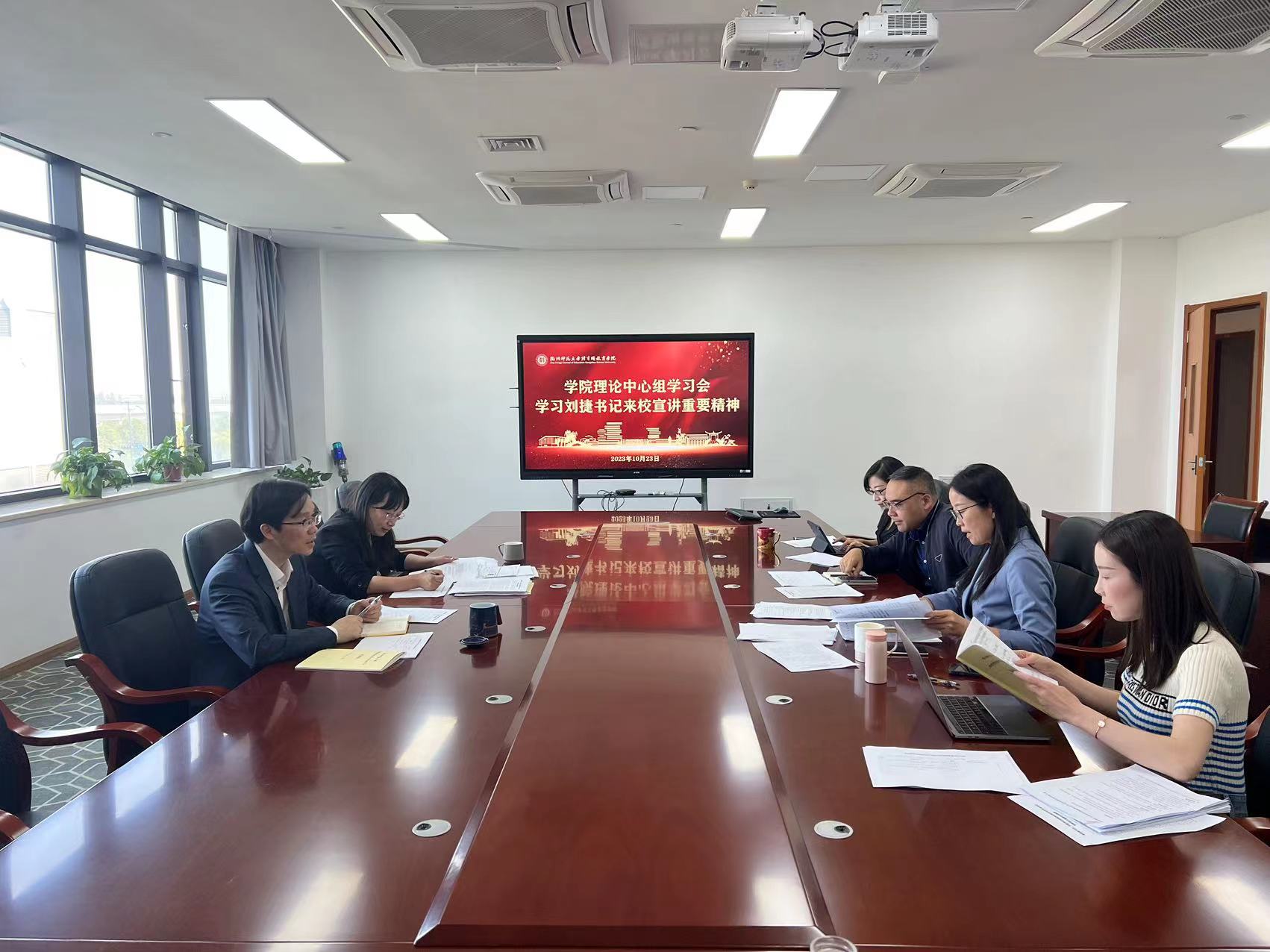 10月23日,学院党委理论学习中心组开展专题学习会,深入学习浙江省委副书记、杭州市委书记刘捷来校宣讲报告会精神,中心组成员集中学习并开展研讨、发言交流,学习会由学院党委书记蒋璐敏主持。