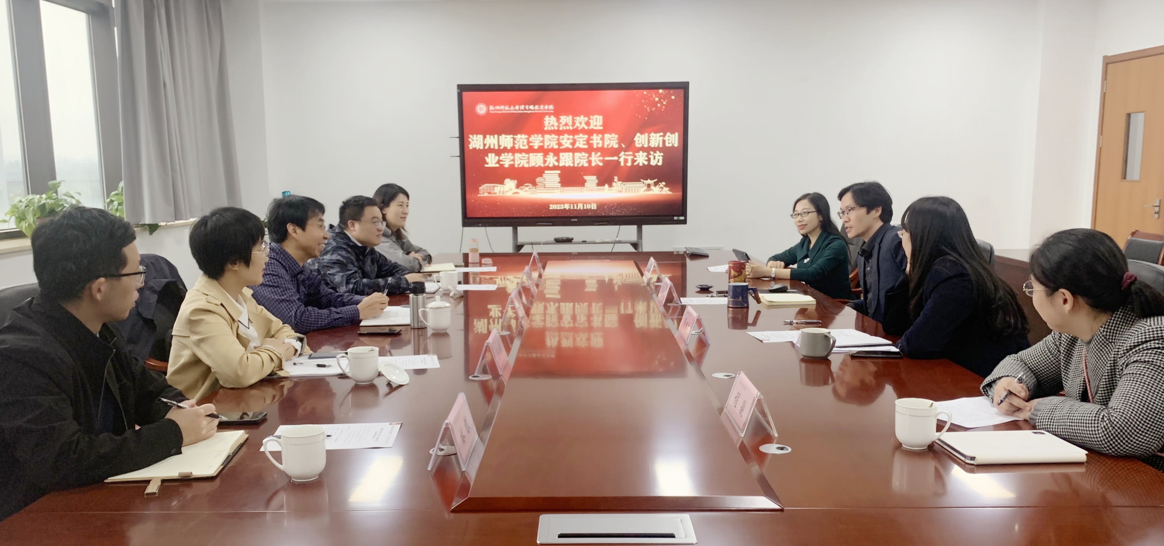 11月10日,湖州师范学院安定书院、创新创业学院顾永跟执行院长、党总支书记谢杭、副院长吕小芬一行来我院考察交流,党总支委员孙冬、党政办林银等随行。我院执行院长严从根、党委书记蒋璐敏、党委副书记沈嫣和学工办主任程骁等参加了座谈交流。