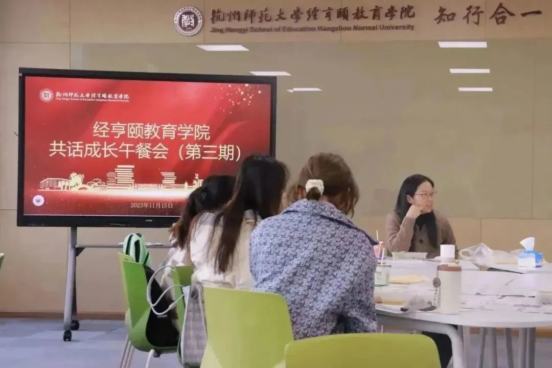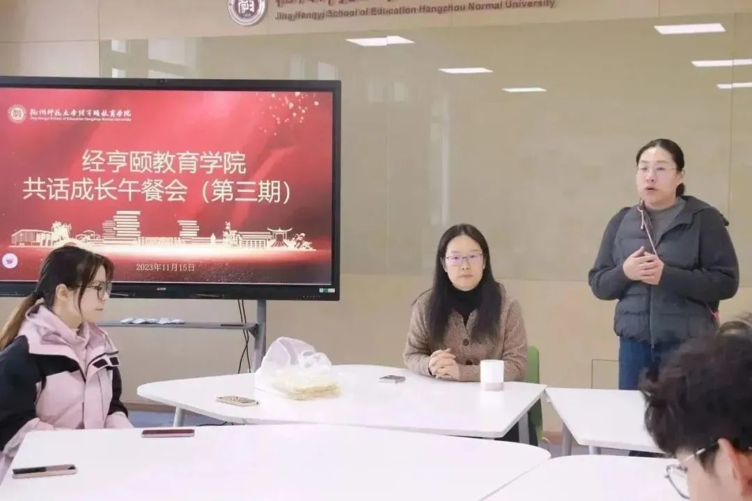 午餐会伊始,许建美副院长亲切询问了在座同学的未来规划,鼓励同学们进一步提升学历。许健美副院长指出,在我省“共同富裕示范区”的发展背景下,用人单位普遍对教师提出了提升学历的要求。此外,国家的利好政策也有利于同学们尝试考研。对此,许建美副院长用生动鲜活的例子做了进一步的阐述。她说,许多学校校长反馈我院毕业生职业适应期较短,但在发展潜力上有所不足。许建美副院长由此提醒同学们,要注重发展良好的写作与调研能力,掌握学术研究方法,最重要的是深入对孩子们的研究。