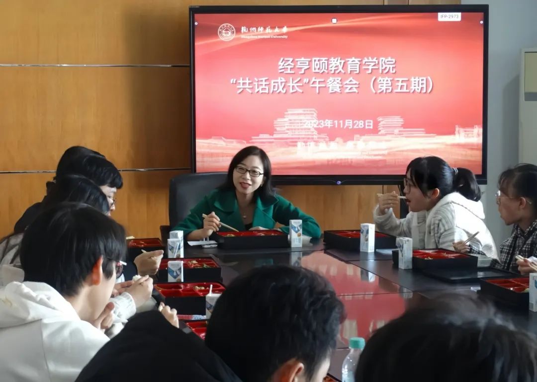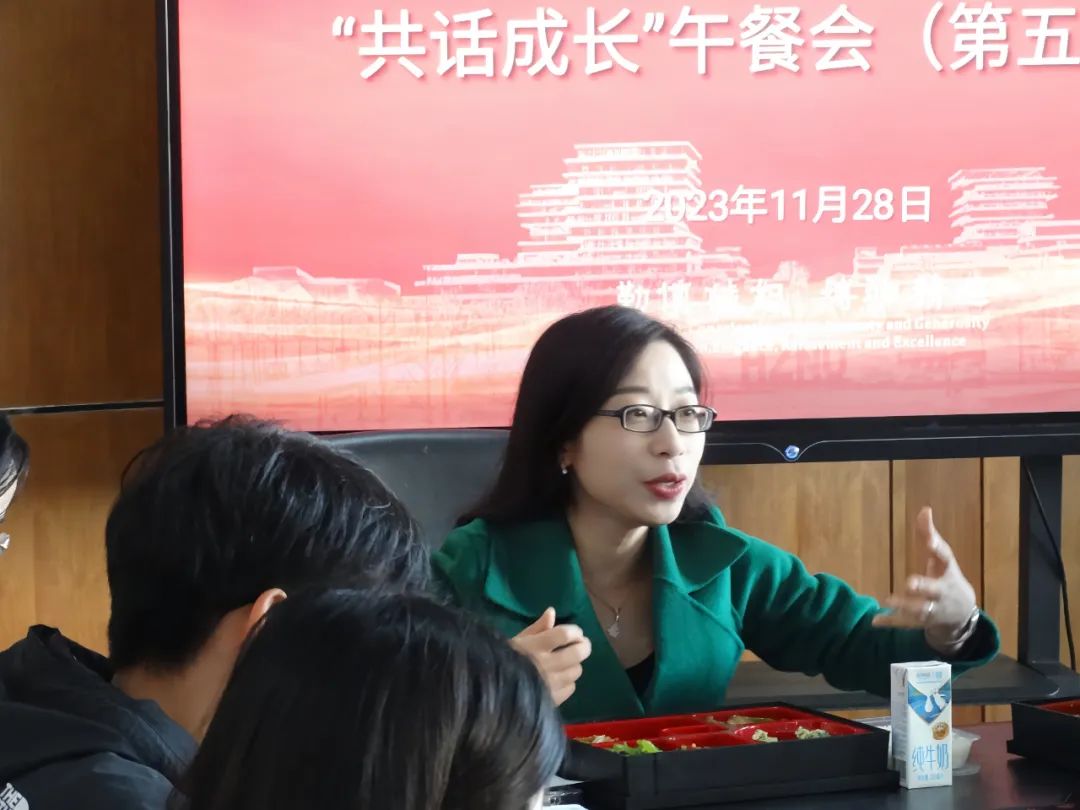 11月28日中午,第五期“共话成长”午餐会在下沙校区如期举行。本次午餐会邀请了我院党委副书记沈嫣与同学们共进午餐,共话个人成长和校园生活。午餐会由辅导员汪康琳主持。