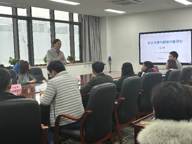 佐斌教授以如何理解“分类”、“社会分类”两个概念作为本次讲座内容的开场,介绍了社会群体刻板印象,社会分类的特性以及分类的心理加工机制,详细解释了原型观和样例观的加工特点。紧接着,佐教授提出分类的认知加工机制与心理发展模型研究,他指出社会分类的维度既包括性别,年龄和种族等自然线索, 也包括语言,职业和社会身份等重要社会线索。在社会分类过程中, 不同维度往往具有相对重要性, 表现为优势维度效应; 不同维度相互之间也会发生作用, 产生交叉分类效应, 佐教授从不同的视角对这种交叉分类效应进行了解释。在接下来的部分中,佐教授介绍了群体与社会群体属性、社会群体的知觉属性、国民刻板印象研究。在关于“社会性偏向:刻板印象、偏见与歧视”的介绍中,具体讲述了刻板印象维护阈限模型,并指出社会群体位置、社会公众对群体社会贡献可以单独或共同反映社会群体印象。