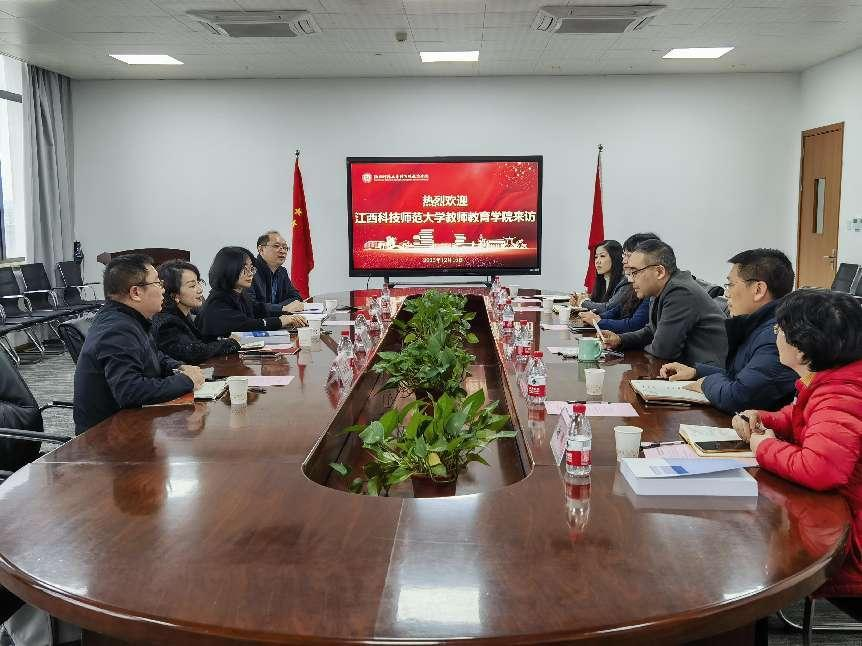 12月15日,江西科技师范大学教师教育学院院长徐艳一行到访我院,副院长黄娟、副院长王金涛和教育学院副院长陈浩彬随行。我院党委书记蒋璐敏、副院长蒋永贵、课程与教学系(中学教育部)副主任郑虹、教务科科长赵娜、实验室主任洪河条和教师教育办公室主任黄超翔等参加了座谈会。