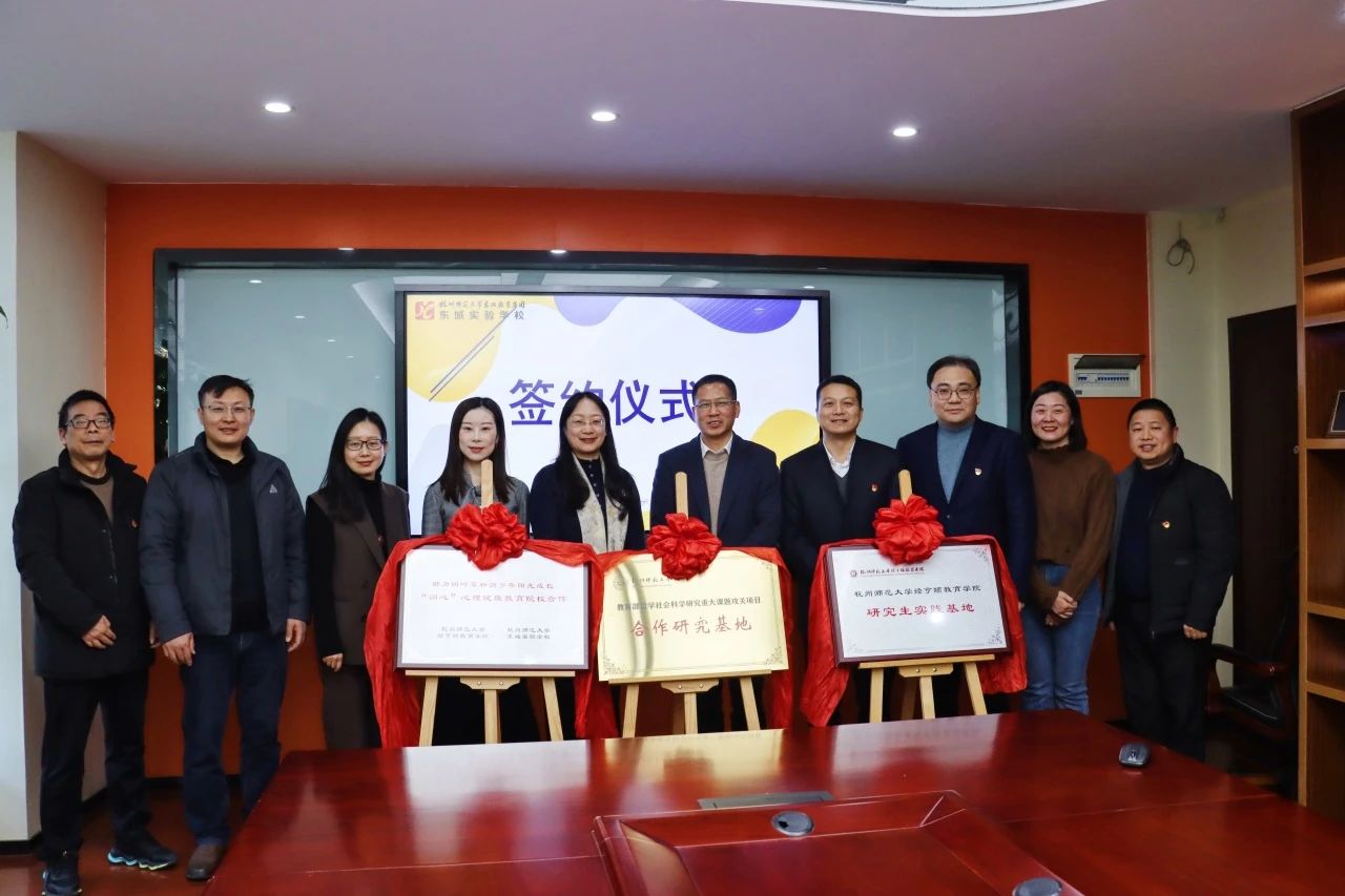 为深入开展学习贯彻习近平新时代中国特色社会主义思想主题教育,贯彻党的二十大关于“重视心理健康和精神卫生”的精神,落实教育部等十七部门“全面加强和改进新时代学生心理健康工作专项行动计划(2023—2025年)”具体要求,学院党委书记蒋璐敏、副院长赵立、心理学教工党支部杨群、王道阳、党茜茜等一行,于2023年12月27日赴色情av影片 东城实验学校东昌校区开展“助力四叶草和润少年阳光成长——“润心”心理健康教育院校合作揭牌仪式暨东实心理健康教育工作研讨活动”。杭州市上城区教育局王世美副局长、色情av影片 东城实验学校沈颖淼书记、童瞻校长、王龙副校长、沈忆来副校长、丁慧鸿副校长等领导、老师参加了仪式活动。