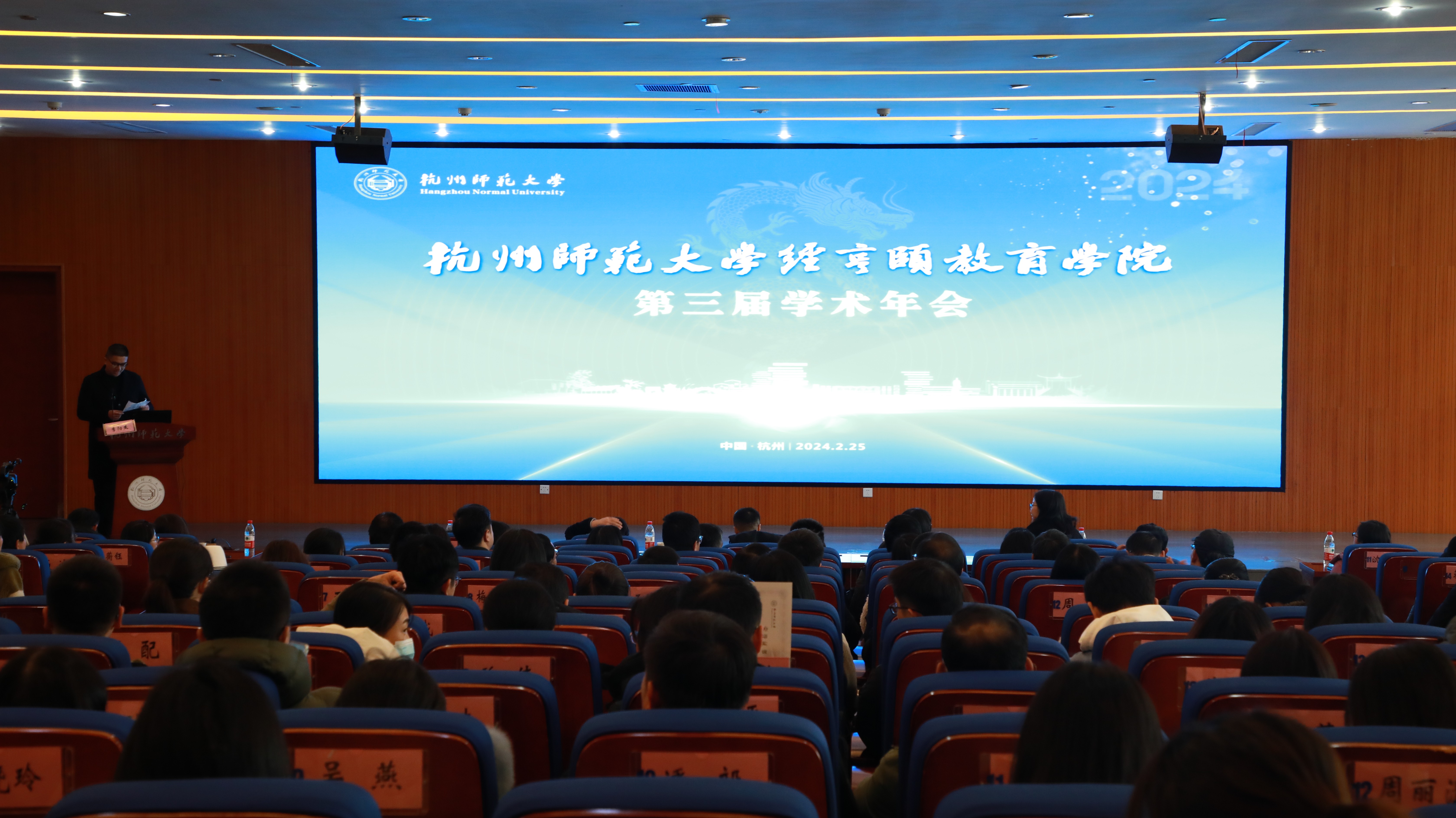 副校长黄兆信为大会致辞。黄校长紧扣“一意见两方案”和学校“十四五”规划明确的目标任务,对标对表争创“双一流”年度任务和2024年度党政工作要点,分别从人才项目、国家级项目(教学、科研)、学术论文、科研成果奖、教学成果奖、省级科研平台等数据对学院“十三五”与“十四五”相关指标进行比较,进一步明确了学院未来努力的目标,同时对学院全体教职员工提出六点希望:严格坚守学术底线;坚持学院与师生共荣意识;鼓励年轻教师抓住最近发展期;强化发展危机意识;多为学院提建议;立足本职多做贡献。希望学院新的一年,凝心聚力,守正创新,以有组织学科建设引领学院跨越式发展。