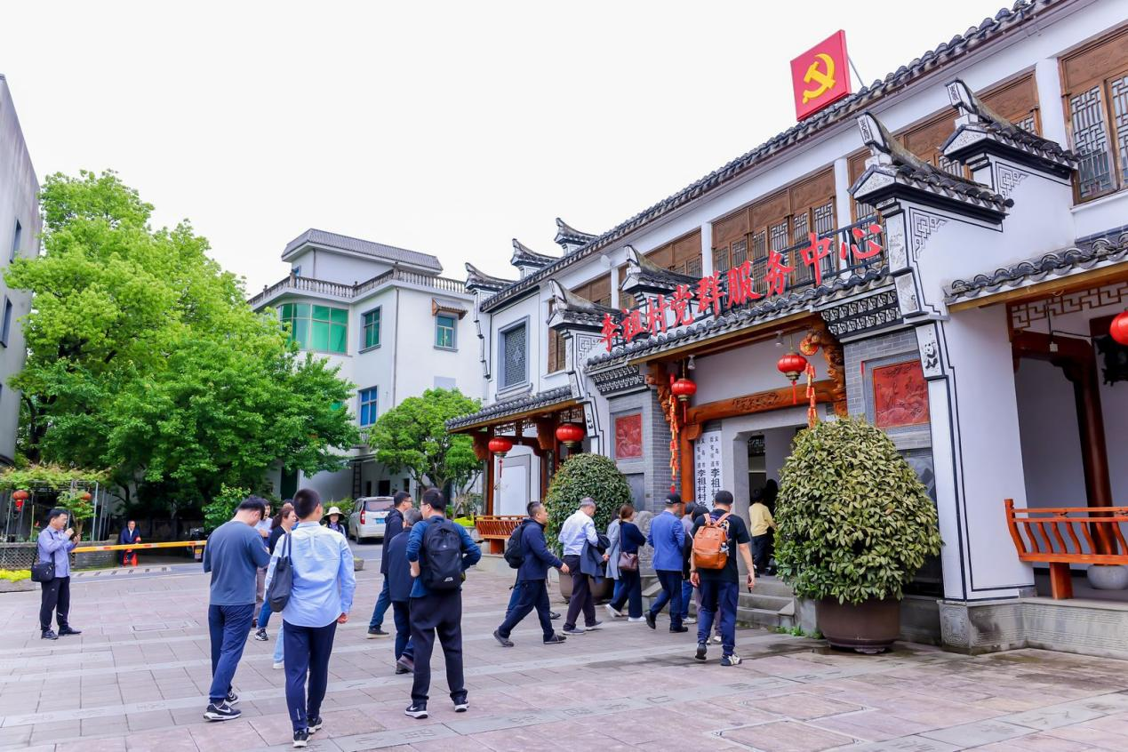 随后参观了李祖村。去年9月习近平总书记来到李祖村考察调研,他指出,“李祖村扎实推进共同富裕,是浙江‘千万工程’显著成效的一个缩影,要再接再厉,在推动乡村振兴上取得更大成绩。”沿着总书记的足迹,跟随讲解员的讲解,教工党员们一起“循迹溯源学思想”,通过观看李祖村党群服务中心发展历程展览中的一幅幅图片,一组组数据,切身感受到:近年来,李祖村积极践行“两山”理论,牢牢抓住“千万工程”契机,发挥党建引领作用,大力培育发展农文旅产业,从一个面积只有1.09平方公里、300多户人家的“水牛角村”,发展为远近闻名的共同富裕示范村,绘就了美丽生态、美丽经济、美好生活有机融合的乡村振兴“富春山居图”。