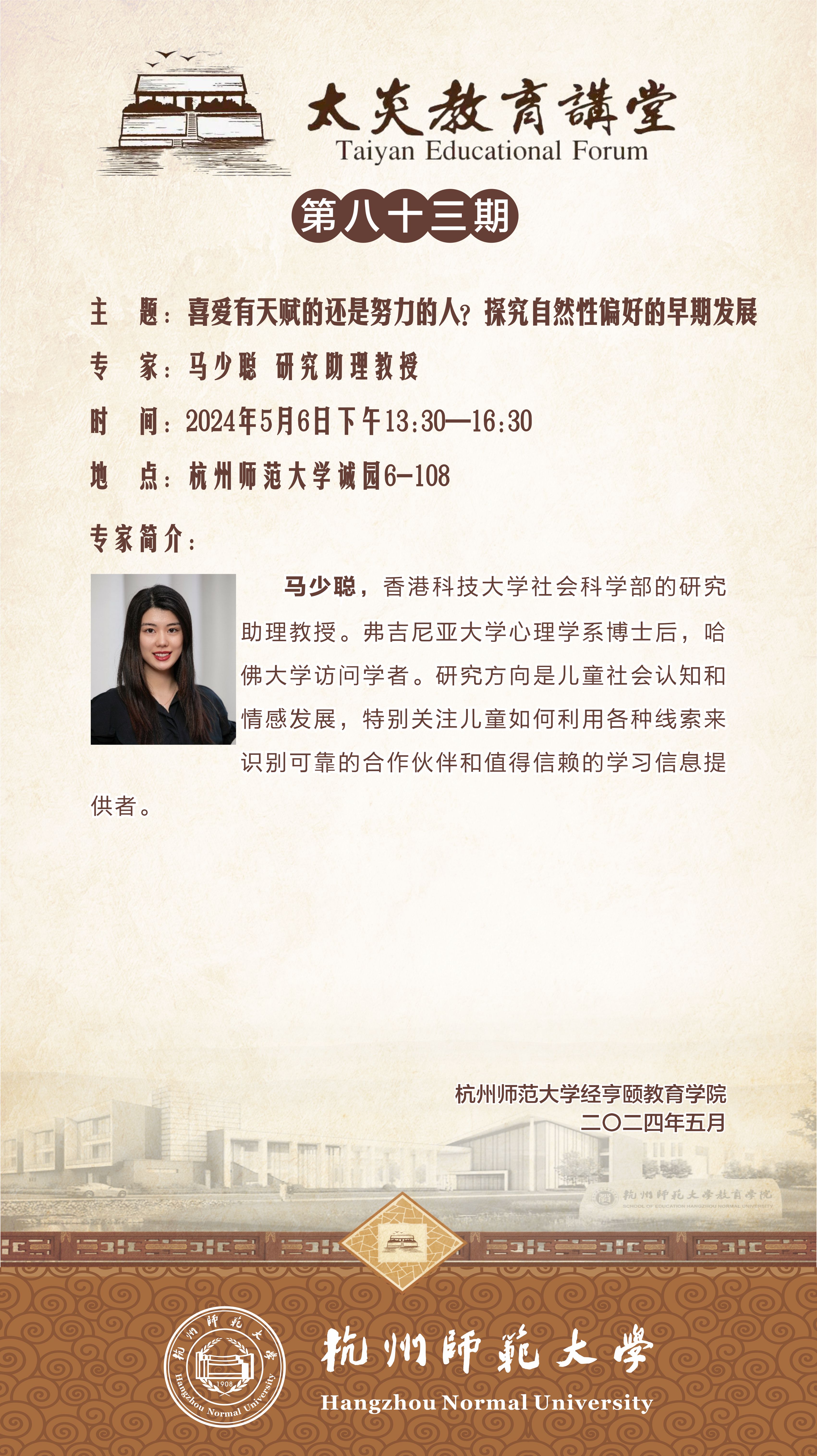 马少聪,香港科技大学社会科学部的研究助理教授。弗吉尼亚大学心理学系博士后,哈佛大学访问学者。研究方向是儿童社会认知和情感发展,特别关注儿童如何利用各种线索来识别可靠的合作伙伴和值得信赖的学习信息提供者。