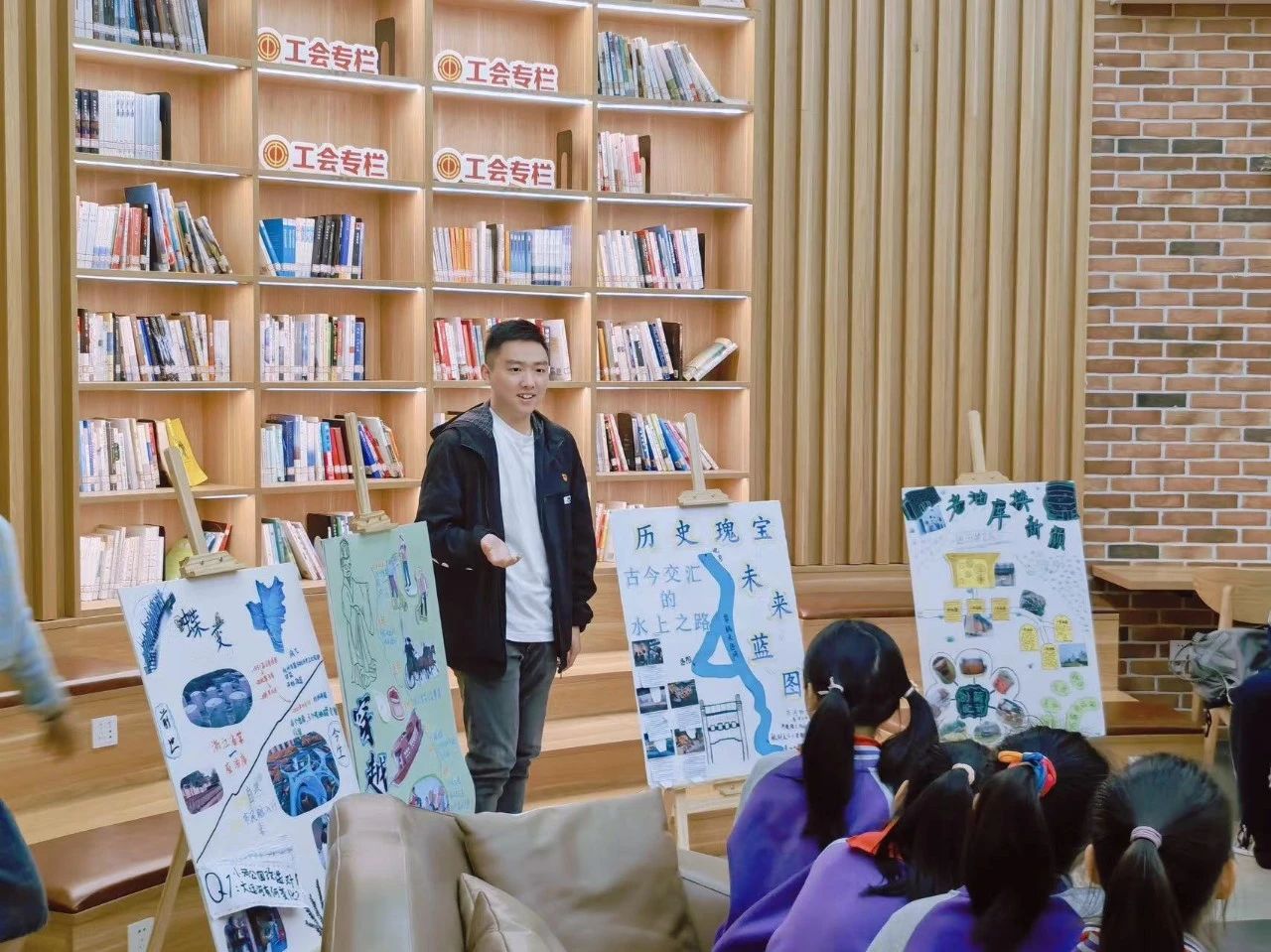“走读运河文脉,解锁拱墅密码”主题实践汇报交流会在拱墅区运河书房举行,四支研学团队围绕“蝶变”“穿越运河”“历史瑰宝 未来蓝图”“老油库换新颜”不同主题进行精彩展示,展板制作精美、语言表达流畅、内容丰富有趣,充分展现了团队成员的研学成果与感悟。