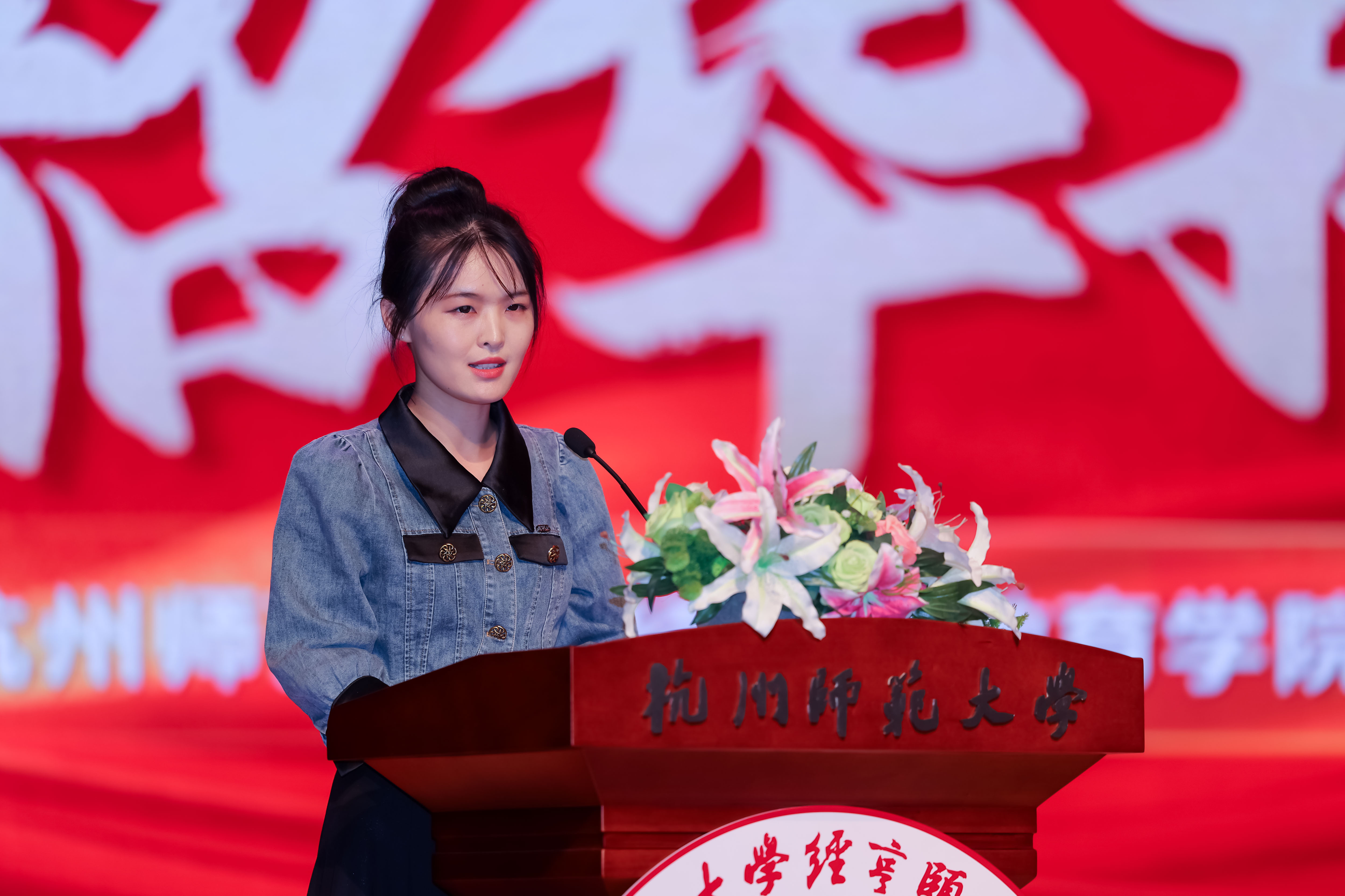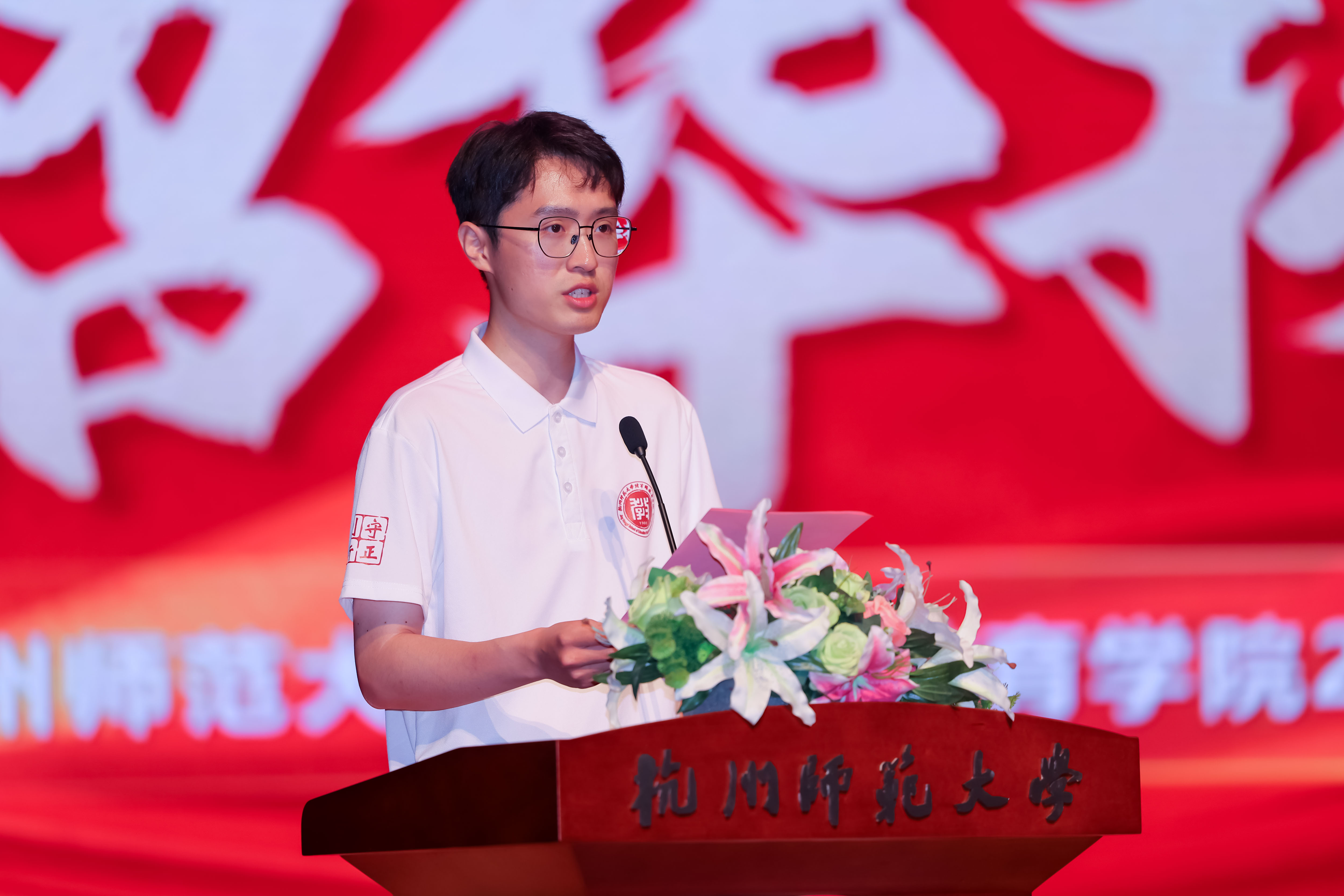 研究生代表张亚莉、本科生代表孙成烨、李钰妍,分别上台发言,他们回顾在校的美好时光,在师长指导下取得的学术成果,与同学结下的深厚情谊,表达了对母校、老师和同学们的感激之情,以及对未来充满信心和期待的决心,并祝愿所有人前程似锦,学校、学院发展更上一层楼。