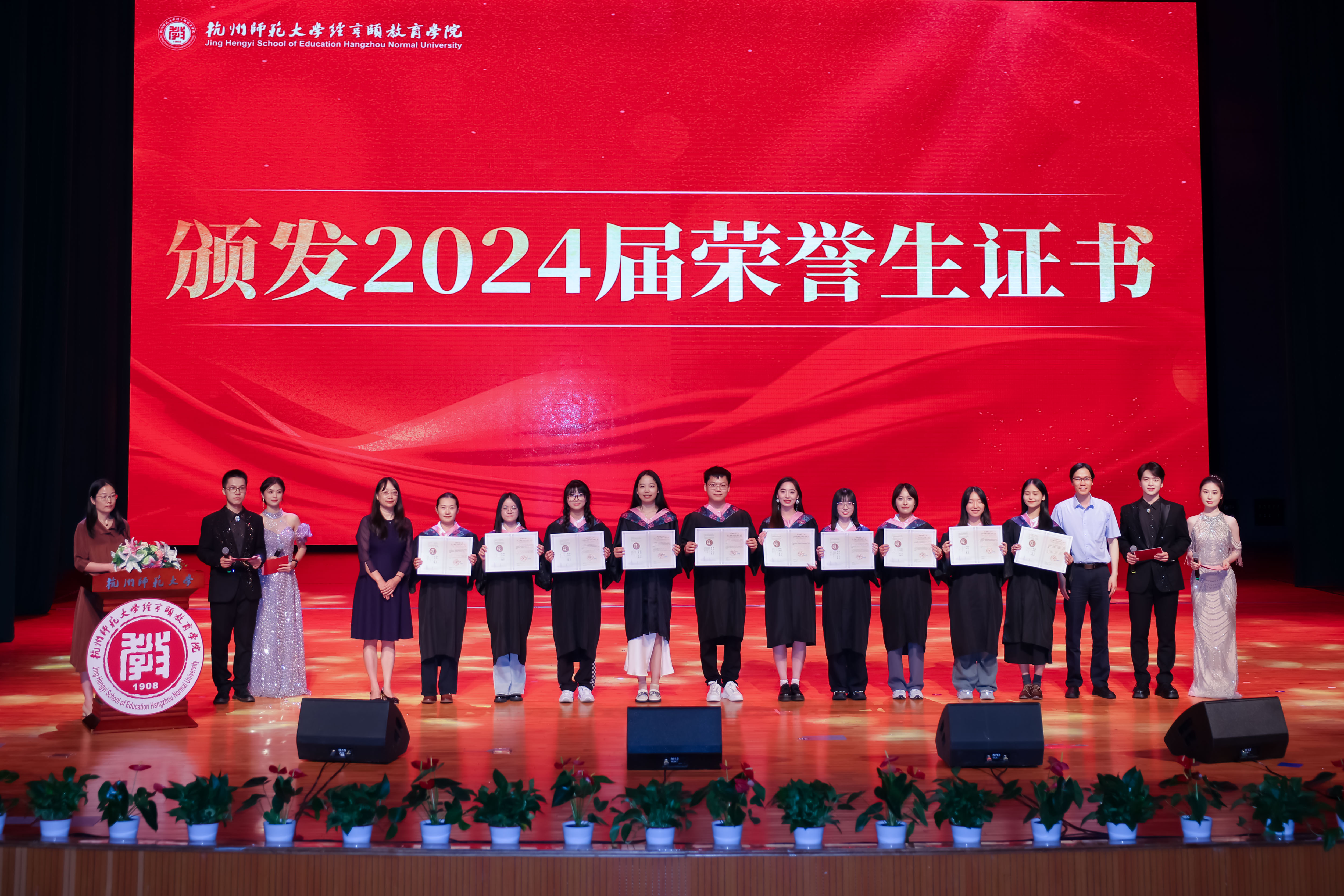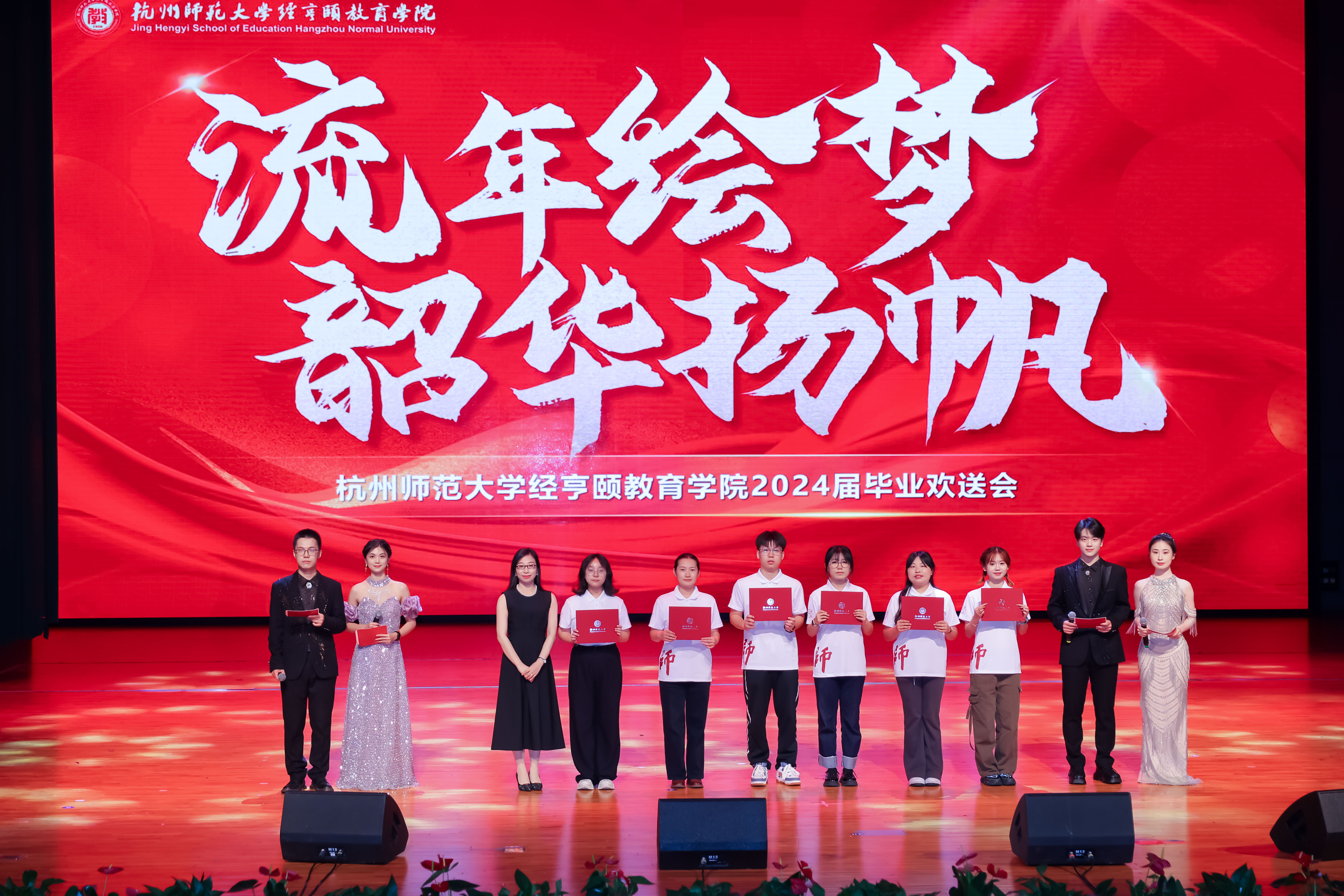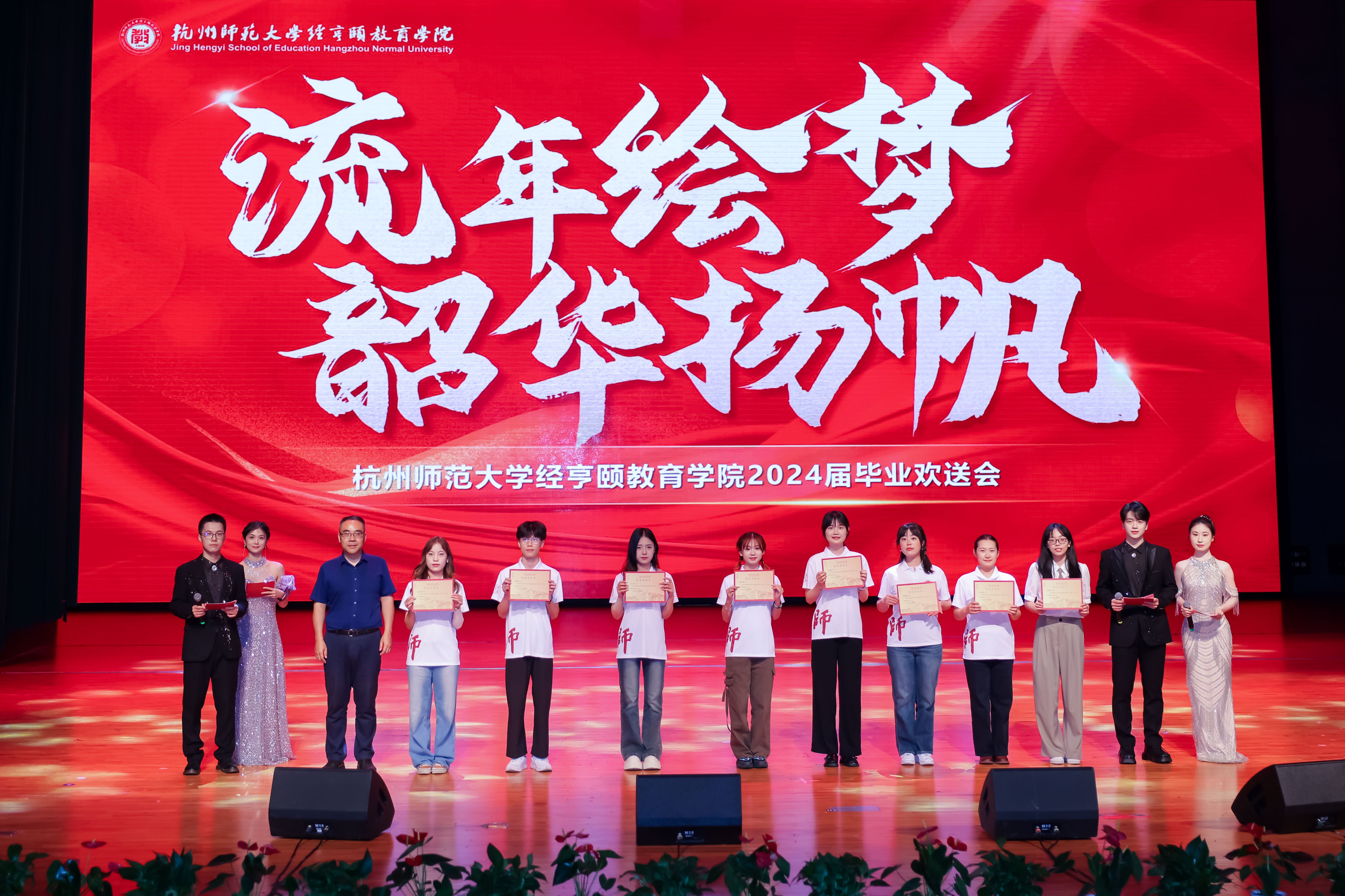 本次毕业欢送会还为2024届荣誉生颁发了荣誉证书,为升学的同学颁发“行知教育特别奖”。许建美副院长上台宣读荣誉学生名单,严从根院长、蒋璐敏书记为经亨颐实验班毕业生颁发荣誉证书,蒋永贵副院长颁发“行知教育特别奖”。