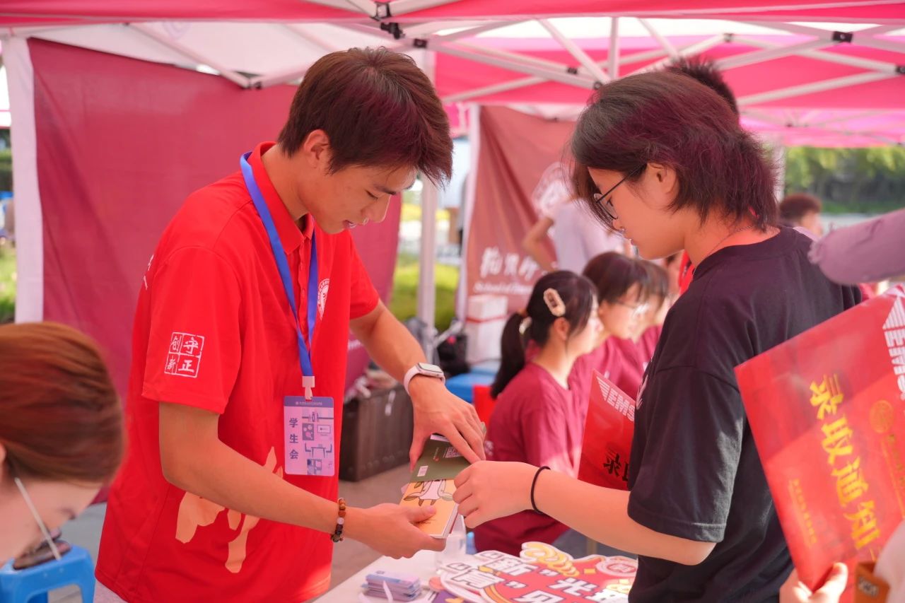 学院领导和全体本科生班主任、辅导员在新生报到点迎接新同学