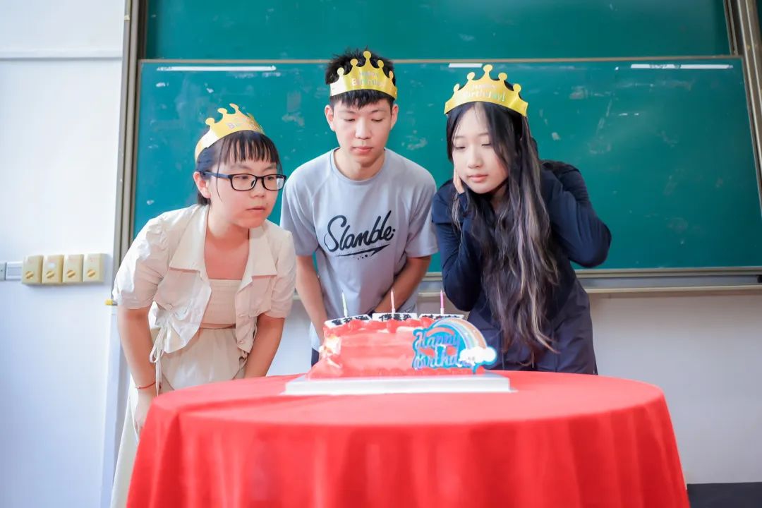 见面会伊始,在学院领导、教职工团队、学生家长的共同见证下,学院为在报到日当天成年的三位新生举办了一场别出心裁的生日会,随着生日歌的节奏,三位寿星许下心愿,一齐吹灭蜡烛,并对父母诉说了自己的感激之情。