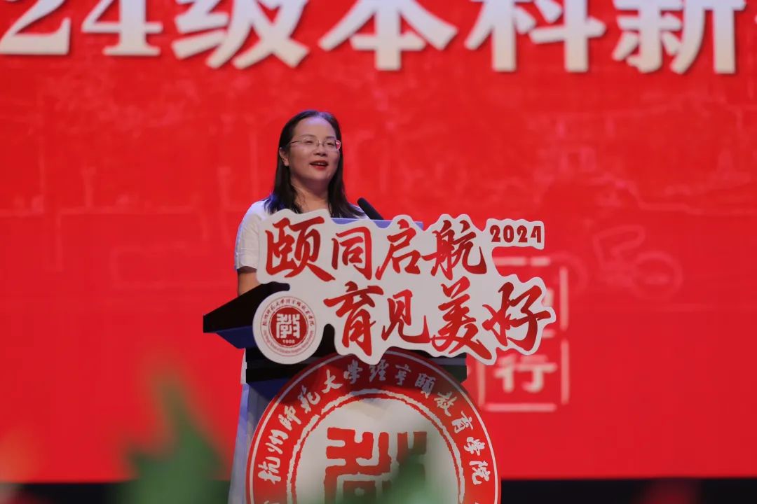 我院院长严从根,党委书记蒋璐敏,优秀校友、易文赛生物技术公司董事长、国泰教育董事长戴玲华,副院长蒋永贵,副院长许建美,副院长赵立,党委副书记沈嫣,小学教育部主任安富海以及全体2024级新生班主任以及辅导员老师出席本次欢迎仪式,仪式由新生辅导员黄诗涵主持。