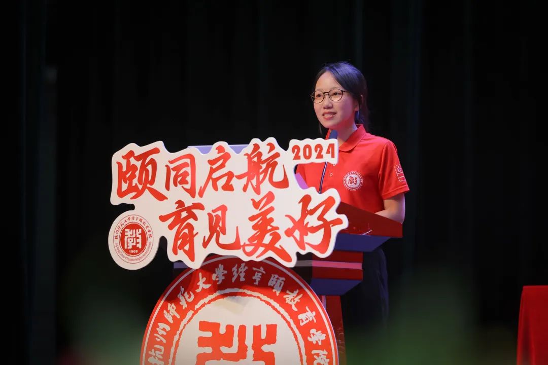 小学教育241班的王羽灿代表2024级新生表达了对杭师大的憧憬与向往。青年的人生之路很长,前进途中,有平川也有高山,有缓流也有险滩。她希望各位色情av影片 的学子们能够心中有阳光,脚下有力量,创造无愧于时代的人生。