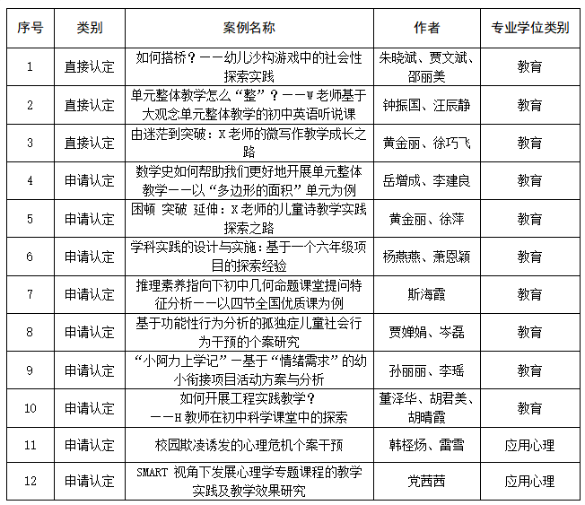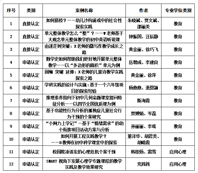 近年来,我院积极探索专业硕士培养的新路径、新模式和新方法,办学成效显著。在本次表彰中,我院共12个项目获得“2024年浙江省优秀研究生教学案例”,其中朱晓斌、钟振国、黄金丽、岳增成、杨燕燕、斯海霞、贾婵娟、孙丽丽、董泽华老师的教学案例获教育专业学位类别认定项目;韩柽炀、党茜茜老师的教学案例获应用心理专业学位类别认定项目。项目清单如下:
