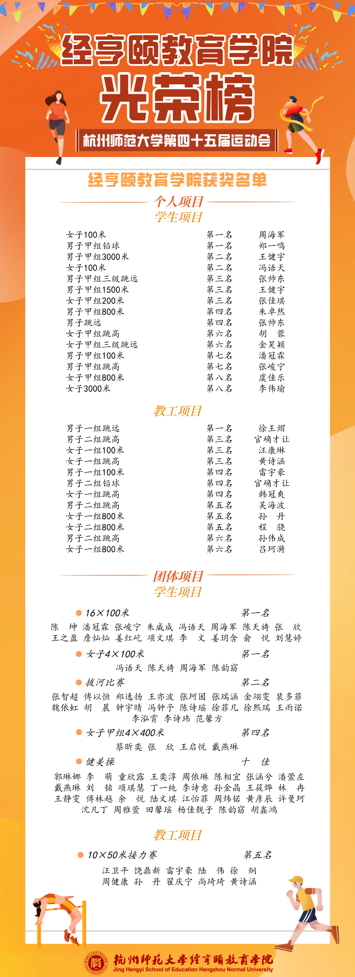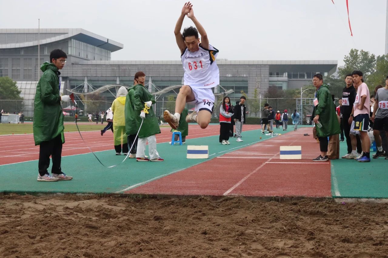 尽管寒风瑟瑟,台风过境,但这些都抵挡不住我院学子势如破竹的锐气。在暴雨天里,没有一个运动员弃赛,不论是冒着雨跑3000米,跳进沙坑浑身泥泞,亦或是风雨中一棒棒的交接,每一个身影都深深刻进我们的记忆;看台亦或是场地上每一个忙碌的、呐喊的观众、志愿者以及工作人员,都是教院精神的缩影。欢呼与拼搏交织,青春与热血共燃,“经英荟萃,颐举夺魁”,教院学子用年少之激情展现青春之活力。