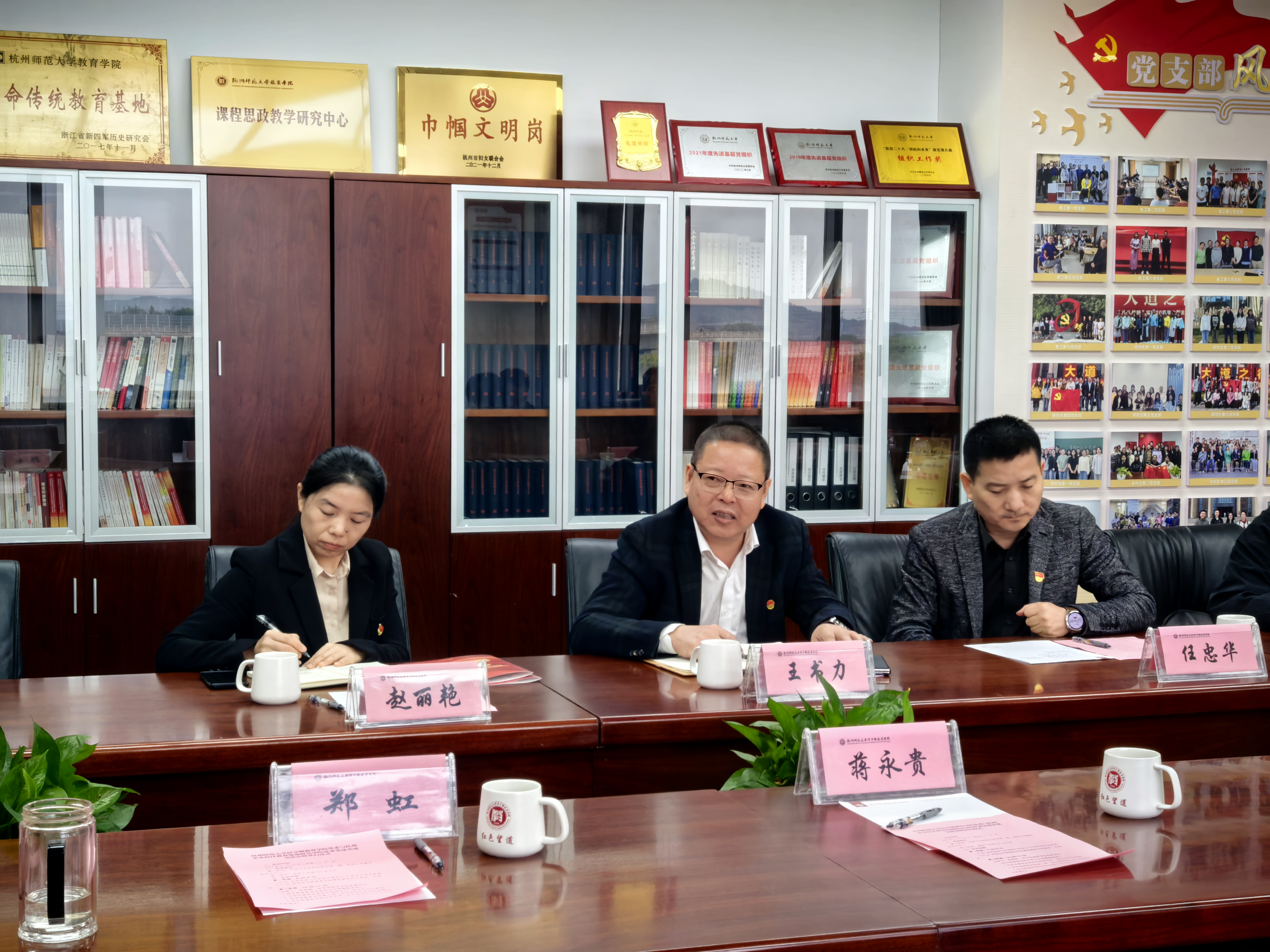 11月19日,学院党委与余杭区教育发展研究学院党委开展党建共建活动。余杭区教育发展研究学院书记、院长王书力一行4人,学院党委书记蒋璐敏、副院长蒋永贵及教工第一党支部、研究生第二党支部部分党员参加活动。