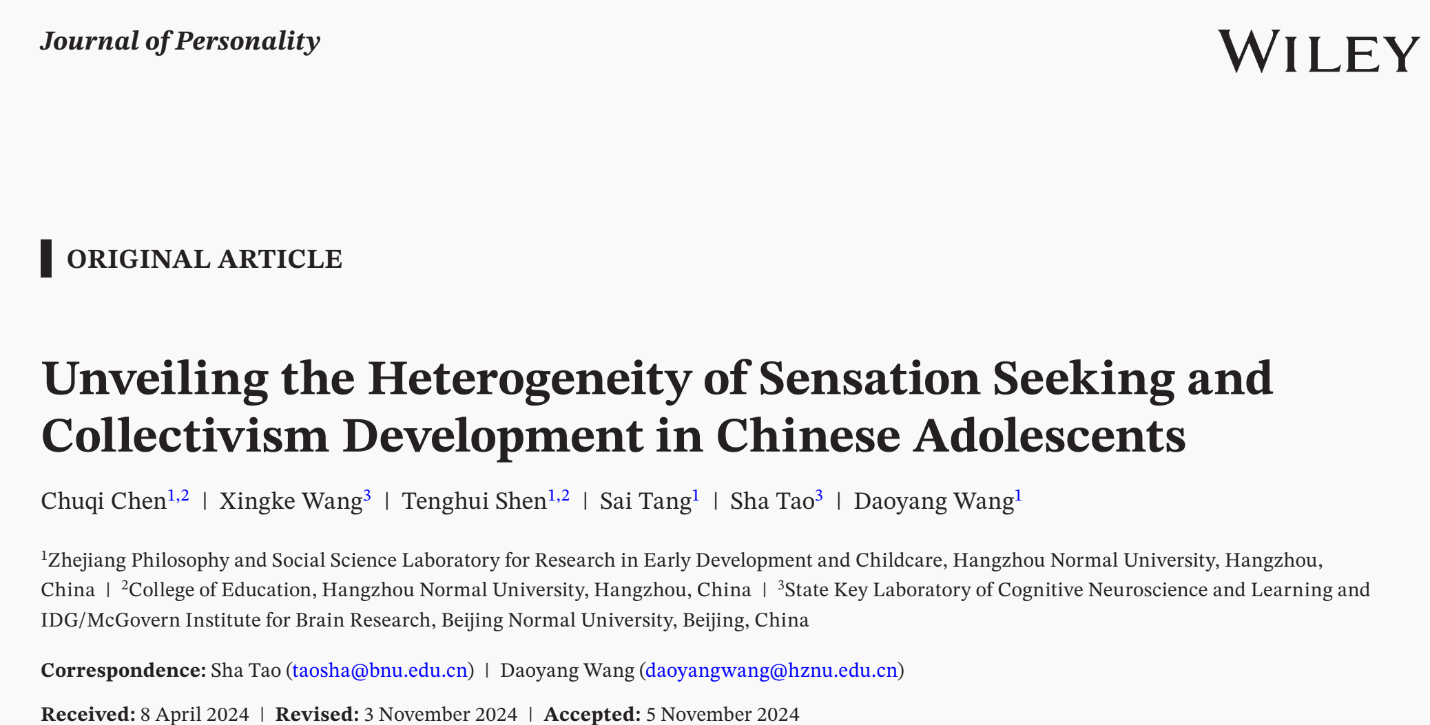 本研究强调了个性与社会文化背景之间错综复杂的作用,采用动态发展视角对感觉寻求和集体主义的关系进行了深入剖析。这些发现证实了认知-情感人格系统理论,即个体的认知变化能够对人格特质产生影响。此外,研究发现社会经济地位是影响感觉寻求和集体主义观发展的重要因素。本研究有助于理解青少年发展的多样性,识别不同发展模式有助于实施更加个性化和精确化的教育干预。