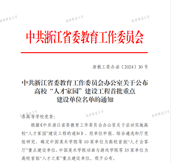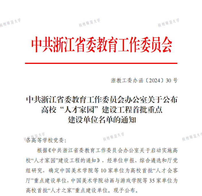 近日,中共浙江省委教育工作委员会办公室公布高校“人才家园”建设工程首批重点建设单位名单,我院“人才之家”成功入选首批“人才之家”重点建设单位,全省共有35家单位入选。