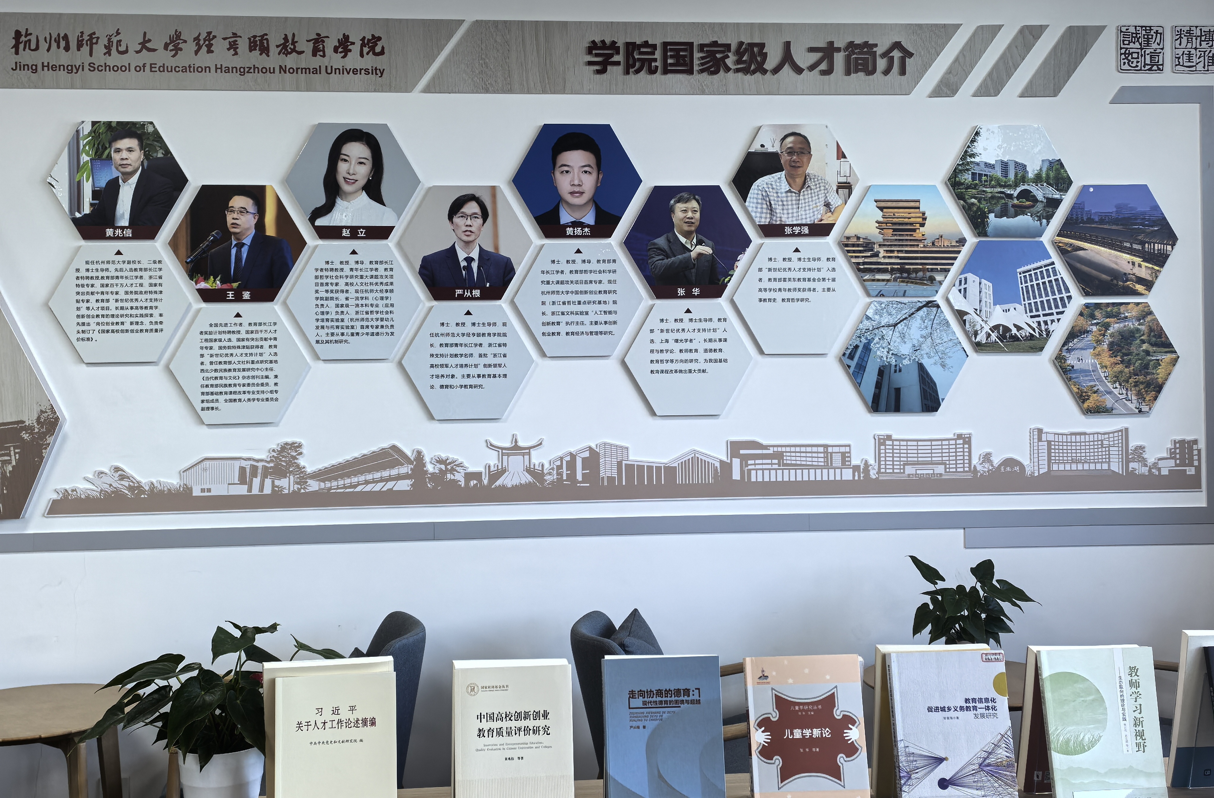 学院“人才之家”位于诚园6号楼304,投入使用面积为102.7平方米,今后将根据场所情况进一步扩大规模,不断完善场地设置和设施设备,提升容积率。“人才之家”以“真心爱才、悉心育才、倾心引才、精心用才”为宗旨,主要设置交流区、阅读区、展示区等三个功能区块,交流区可用于开展专家学者和师生的讲座、工作坊等各种研讨活动,满足各类人才召开会议、举办论坛、小组讨论等活动的需要。阅读区内放置涵括教育、心理、科学等领域的百余本书籍并定期更新,方便各类人才及师生博览群书,查阅各类文献,自主思考各种研究课题及问题。展示区定期更换宣传素材,跟进时事热点。