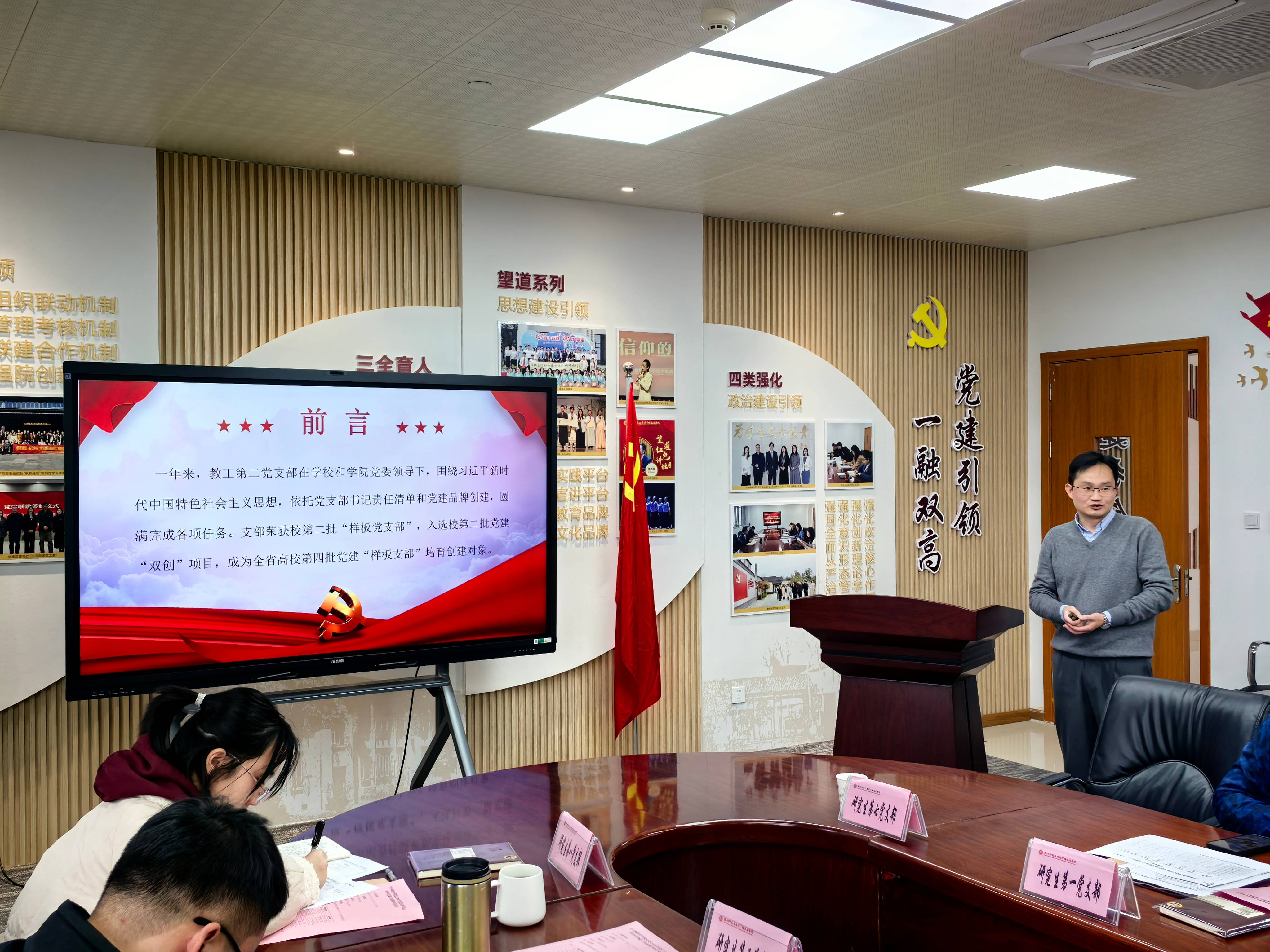 会上,党委书记蒋璐敏通报了学院党委2024年度工作情况。学院党委坚持以习近平新时代中国特色社会主义思想为指导,深入学习贯彻党的二十届三中全会精神和全国教育大会精神,扎实推进党纪学习教育,不断强化基层党组织建设。学院党委深入推进党建“四个融合”行动,坚持将党建与争创“双一流”学科、申博工作、人才培养、社会服务等事业全面融合,构建“教育先锋·五大引领”党建工作体系,在学校的支持下,新获省“样板党支部”、省“‘双带头人’教师党支部书记工作室‘强国行’团队”、省离退休干部“三强六好”示范党支部共3项,校最强党支部1项;与钱塘区教育局党委等多家单位共建联建,获区级党建融合优秀案例1项。以“校内巡察”为契机,全面落实从严治党。同时,蒋璐敏书记对支部工作成效、党建引领事业发展取得的成绩给予了充分肯定,结合全国高校党的建设工作会议精神的学习,提出了三点要求:一是筑牢基层组织堡垒,从严从实抓支部建设、党员教育、党务规范,推动党建工作规范化管理。二是推进党建业务深度融合,立足学院党建思政特色、学科专业优势和学生发展所需,革新思维,加强协同,主动对接学院中心工作和任务需求,提升党建工作实效性;三是强化榜样作用发挥,党支部和党员主动融入、积极参与学院各项中心工作,带头攻坚克难,主动作为,真正让党员形象树在师生口碑中、作用发挥在实干实绩里。