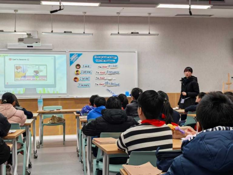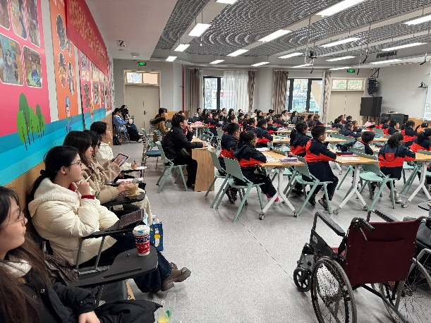 为促进我院小学教育专业师范生对小学英语教学实践的理解,提升英语教学技能和专业素质,我院携手杭州市竞舟二小,于2024年12月25日下午在竞舟二小一楼多功能厅开启了一场别开生面的“双师课程”示范展示活动。我院周瓦老师、杭州市竞舟二小英语组教师刘安然、吴婕、陈益珠、李佳及学院的2022级部分本科生共同参与了此次活动。