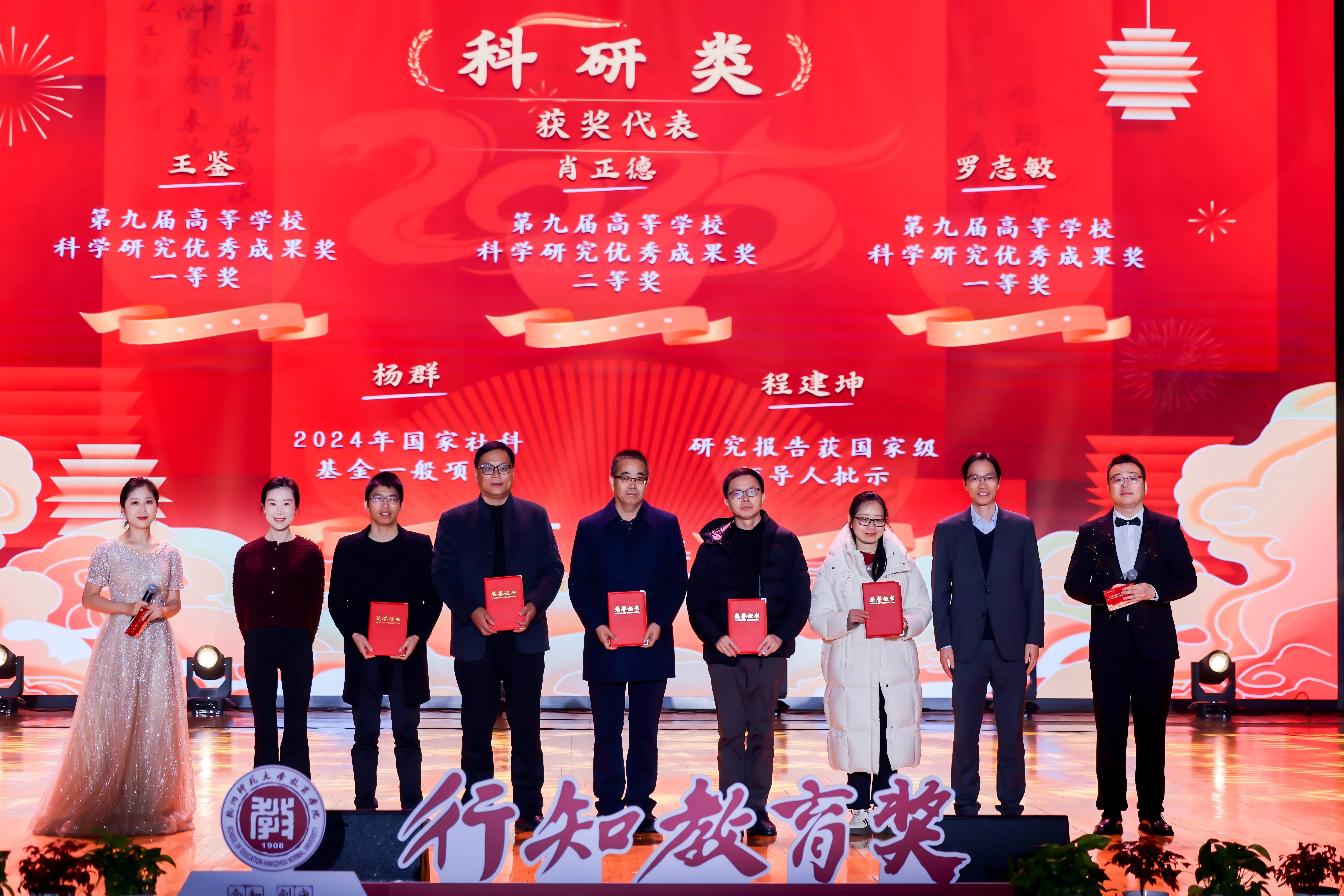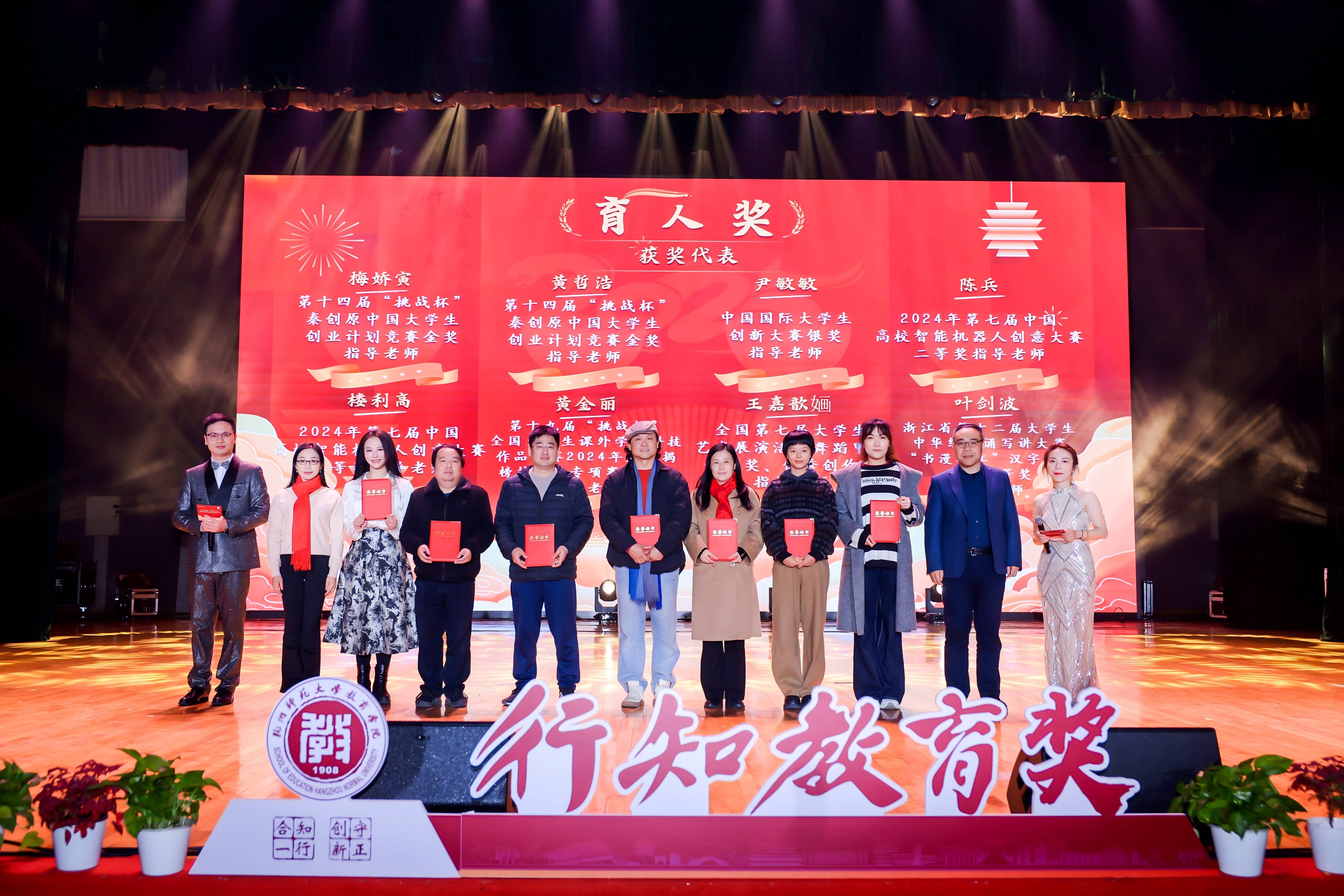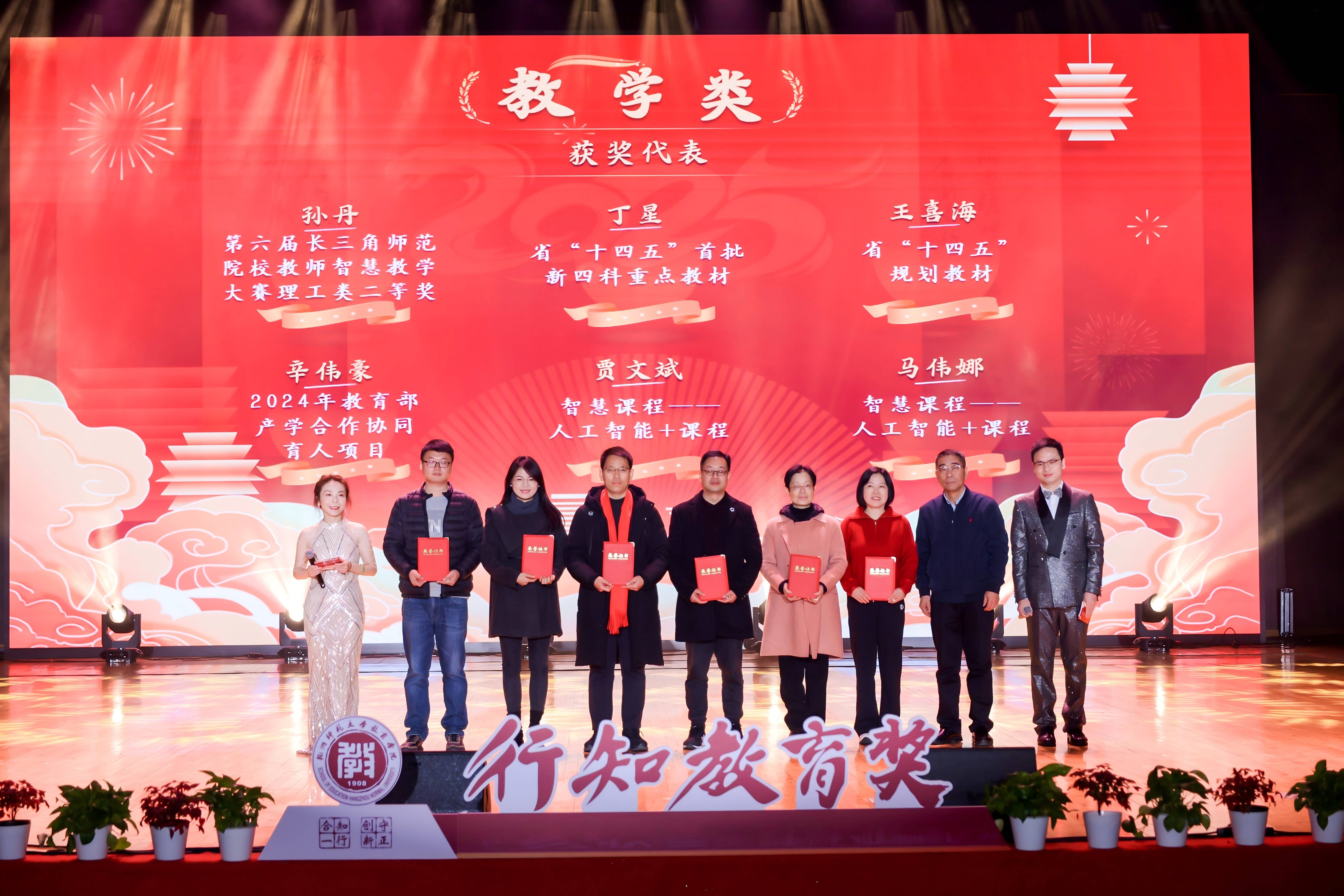 颁奖典礼上,学院对2024年在教书育人、学术科研、服务管理、党建思政等领域取得突出成绩的教师和团队约390余人次给予表彰,其中,人才与平台建设类6项,教学类67项,科研类61项,育人类152项,党建类16项,综合类88项,包括第九届高等学校科学研究优秀成果奖一等奖、人工智能与创新教育实验室获批浙江省高校文科实验室、中国创新创业教育研究院获批浙江省高质量哲学社会科学重点研究基地、第六届长三角师范院校教师智慧教学大赛理工类二等奖、学生学科竞赛指导教师等。