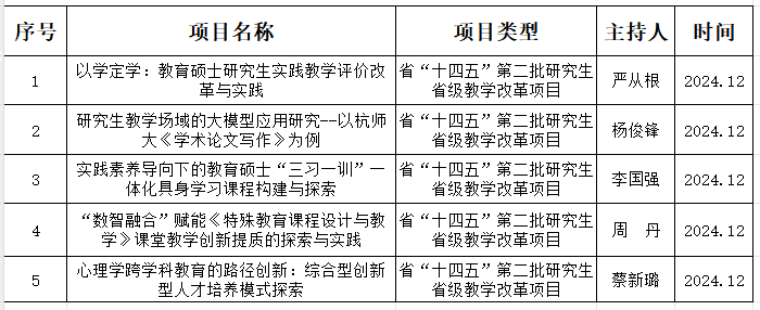 近日,浙江省教育厅办公室公布了浙江省“十四五”第二批研究生省级教学改革项目的立项通知,我院教师喜获研究生省级教学改革项目5个。