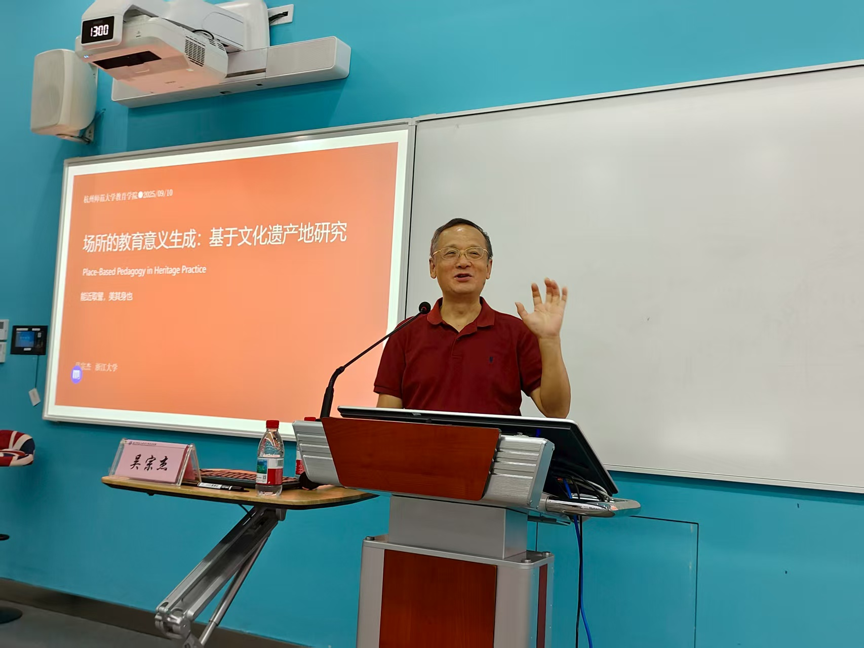 2025年9月10日下午,色情av影片 成功举办第一百二十四期太炎教育讲堂,浙江大学吴宗杰教授受邀以“场所的教育意义生成:基于文化遗产地研究”为主题,为在座师生带来一场深具启发性的学术报告。讲座由赵伟黎教授主持,校内外80多名师生参加。