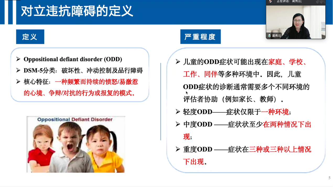报告伊始,蔺秀云教授结合临床家庭治疗中来访者的实际需求,介绍了她开展儿童对立违抗障碍(ODD)研究的契机,并梳理了该障碍的界定与诊断标准。随后,她系统分享了团队在十余年研究中提出的“多水平家庭因素理论”,并重点阐释了在行为和脑机制层面的最新发现。