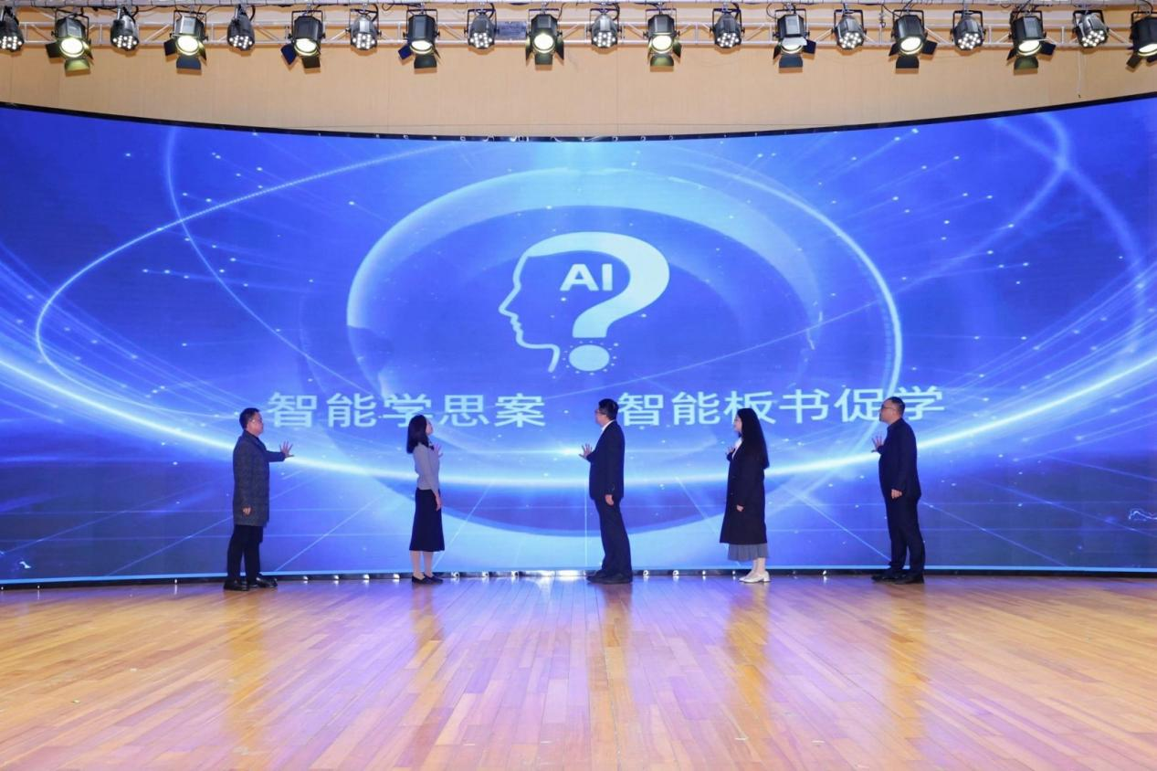 唐睿康、顾小清、我校色情av影片 副院长蒋永贵教授、杭州市临平区乔司中学书记董长春、我校小学教育专业学生王欣颖还共同发布了“智能学思案”与“智能板书促学”两项创新成果。这两项成果,是由我校色情av影片 蒋永贵教授领衔的团队,历经多年深耕,将人工智能技术与真实教学场景深度融合所结出的硕果。