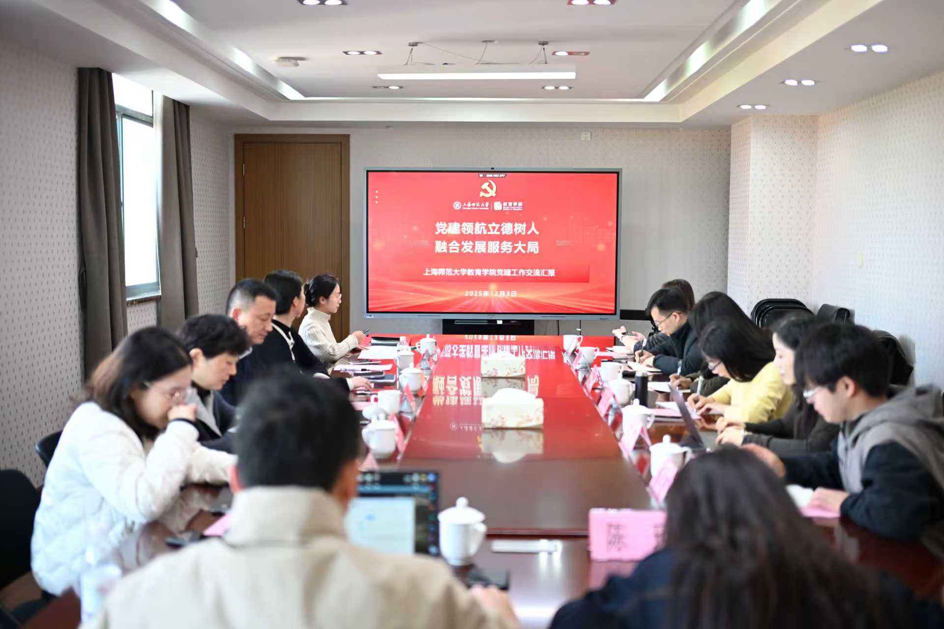 12月2日,在华东师范大学教育学部,党委书记闫露介绍了学部党建工作及“全国党建工作标杆院系”建设情况,职业教育与成人教育研究所教工党支部和本科生党支部分别介绍了高校“双带头人”教师党支部书记工作室建设和“全国党建工作样板支部”建设情况。同时,双方围绕基层党组织建设、党务干部队伍建设和创新创业教育进行了交流。